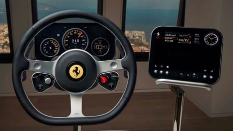 だ革製のシートに腰を下ろすと、フロントウィングの真ん中に取り付けられたミラーがあまりにも小さく見え、エルゴノミクスに基づいているかどうかは、疑わしく思えてくるのだけれど。