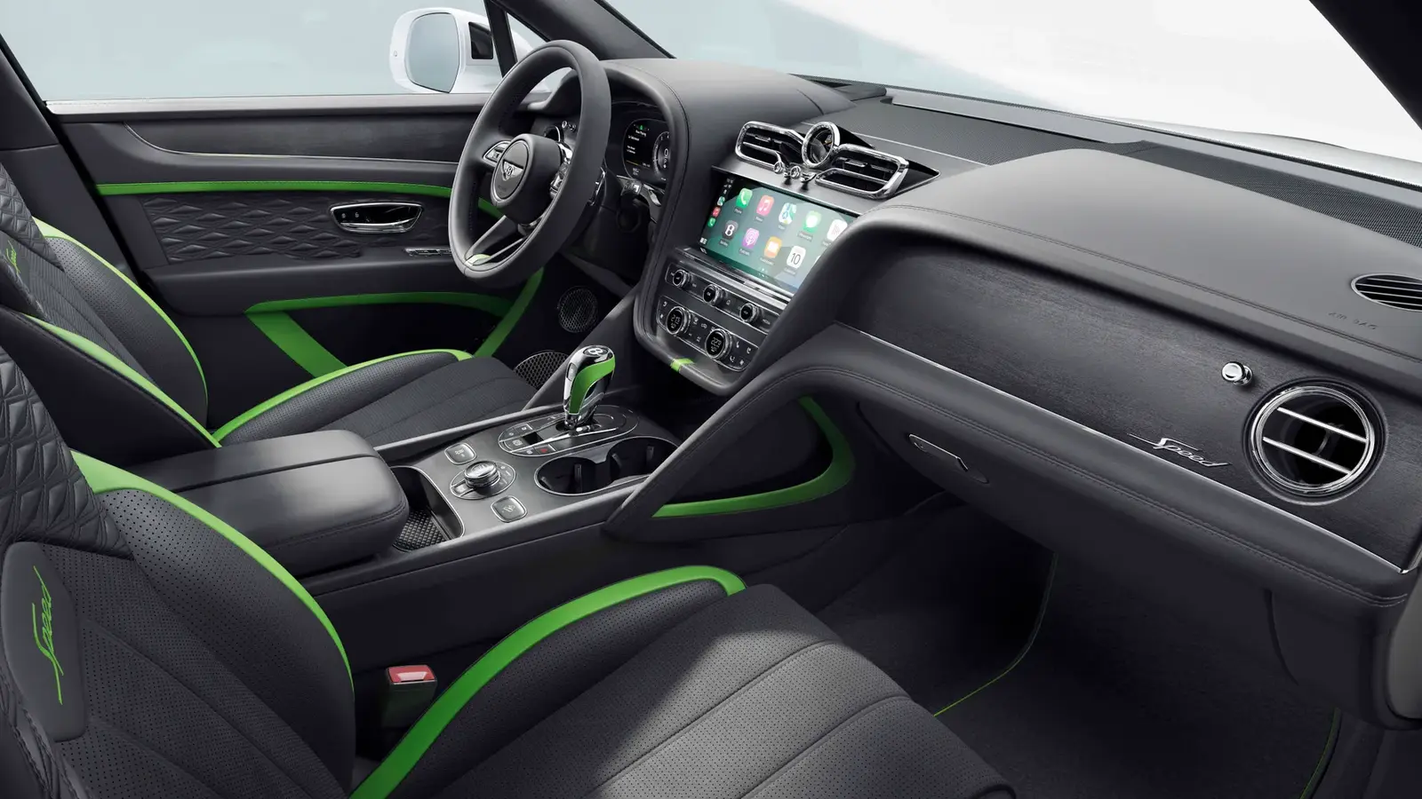 ベントレーの「スピード」モデルにふさわしく、この大型ベンテイガは、ダークティントのブライトウェア、内外装のSpeedバッジ、22インチホイール(オプションで23インチも選択可)、選択可能なキャリパーカラー、オプションのブラックルーフ、インテリアには新たな「プレシジョン・ダイヤモンド」キルトパターン、そして「主要」カラーとしてダーク系のセカンダリーレザーが採用される。