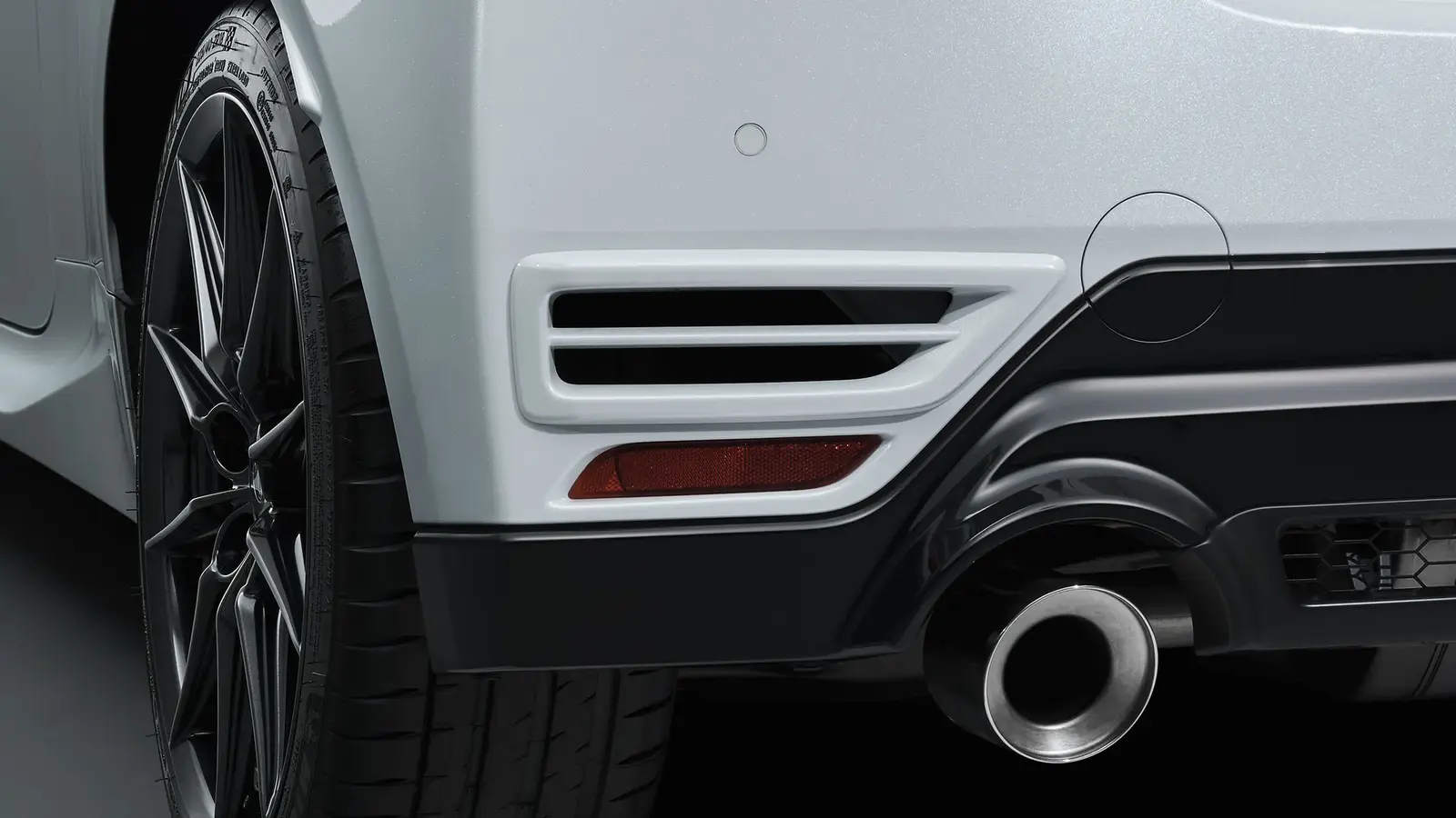 そして6) ダクト、ダクト、またダクト!: フロントフェンダーとリアバンパーの両サイドに追加されたダクト群。これら全てが、GRヤリスのずんぐりむっくりした小さなボディの周りを流れる空気を、ある時は脅し、ある時はなだめすかしながら、完璧にコントロールするのだ。