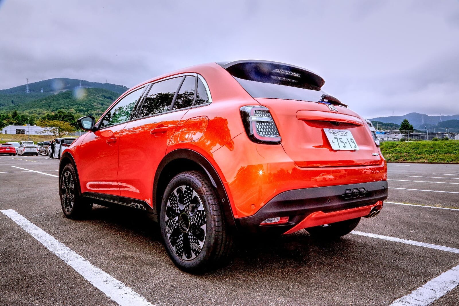 今回のWEC富士への旅路を共にしたのは、プジョーと同じステランティスグループに属する、イタリアの小さな伊達男、フィアット 600 ハイブリッド(419万円)だ。そのボディカラーは「Sunset Orange」。夕焼けを思わせる鮮やかなオレンジ色が、道行く人の視線を集める。