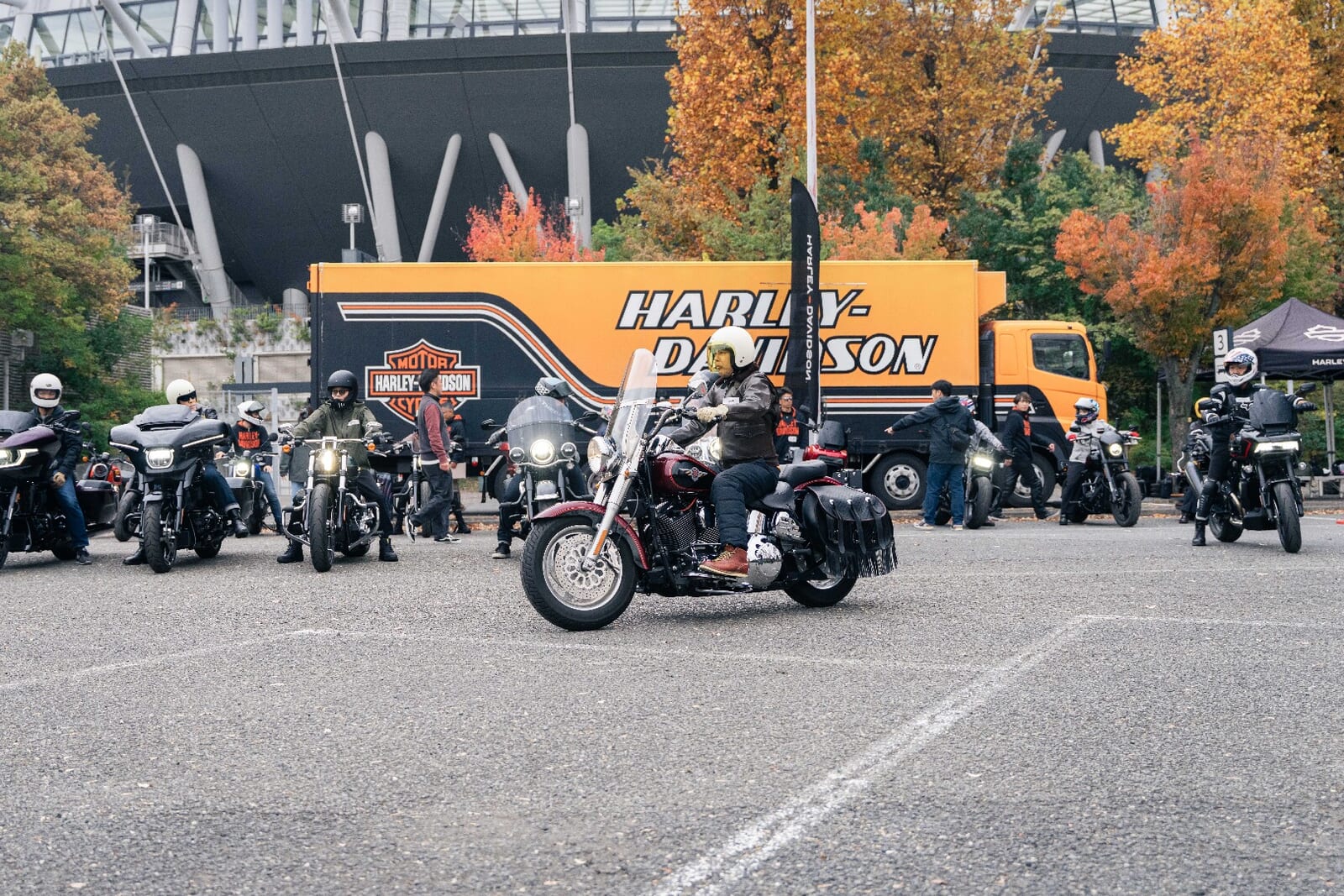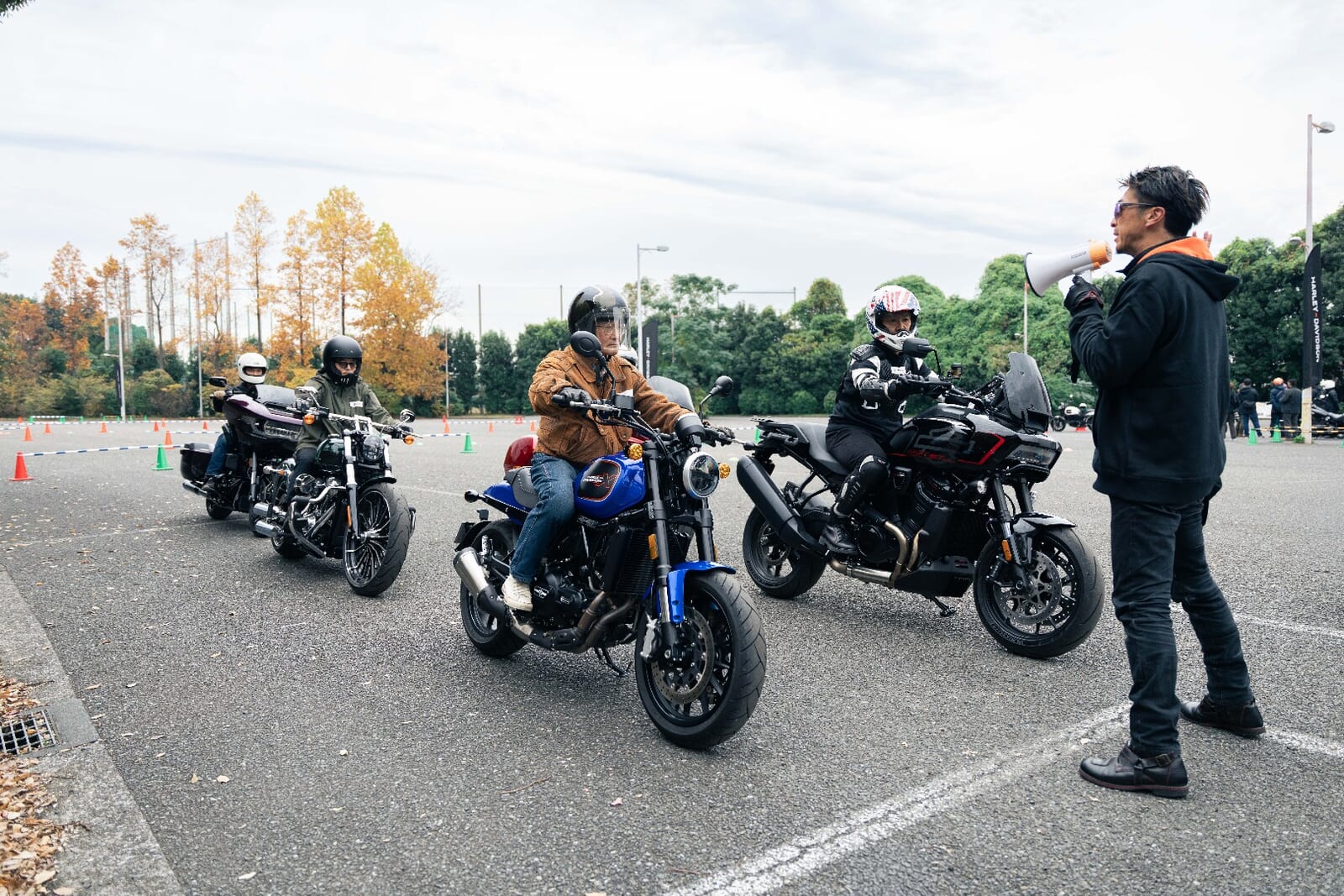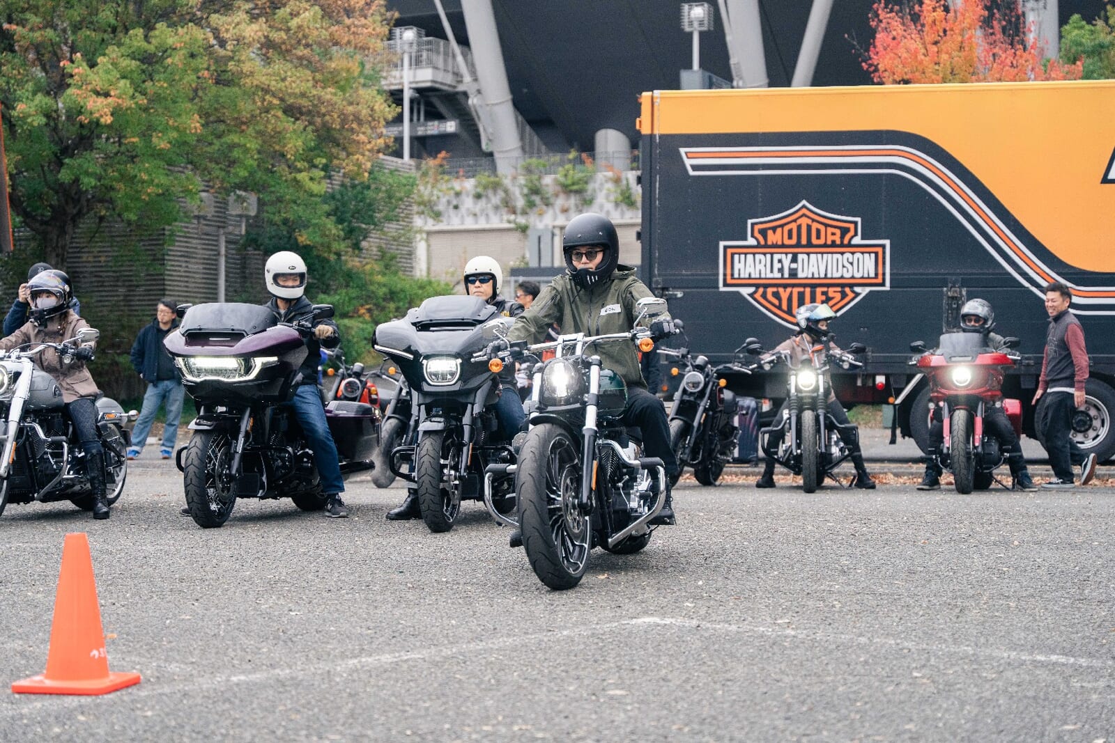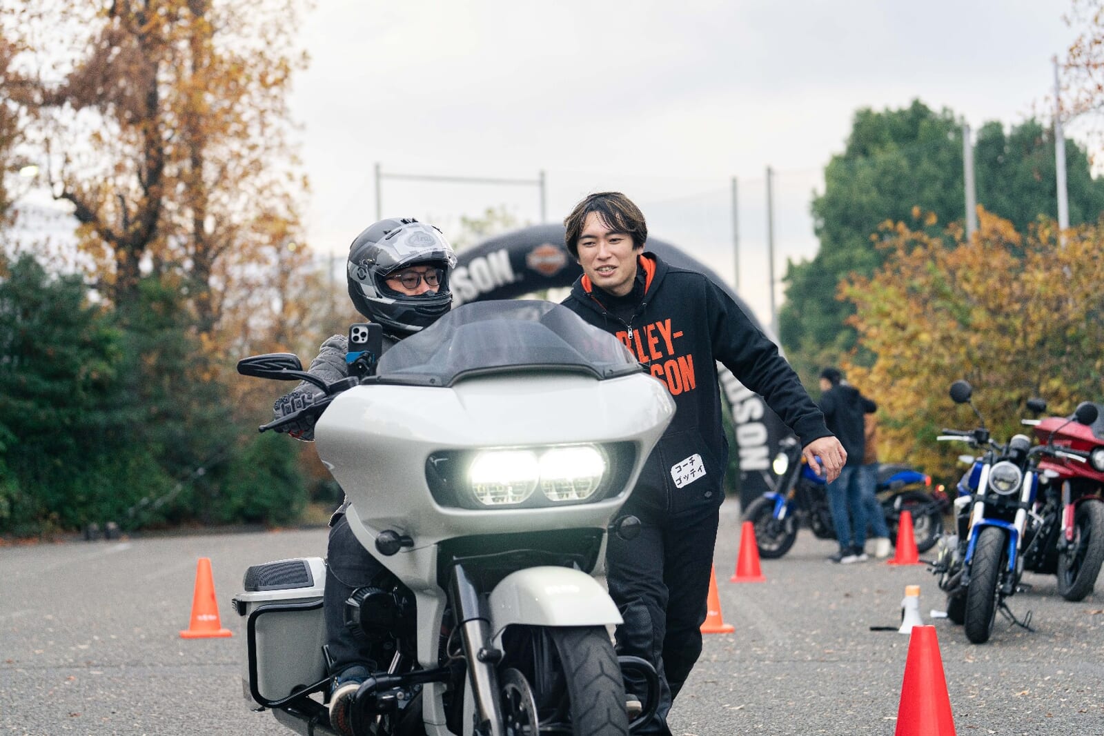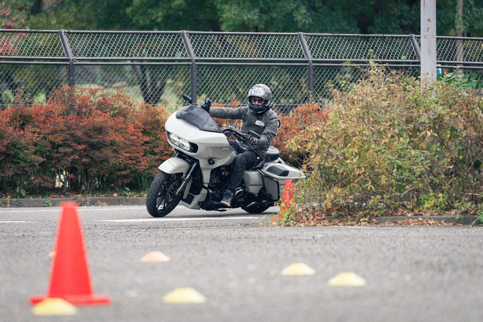 2つ目の特徴は、ハーレーダビッドソンに特化している点である。このレッスンの核心は、これが「バイクのレッスン」ではなく、徹頭徹尾「ハーレーを乗りこなすためのレッスン」であることだ。一般的なライディングスクールでは異端児扱いされがちな、あの長く、重く、どこまでもトルクフルな“クロームの塊”を、いかにして手懐け、共に踊るか。その一点にすべてが注がれている。コーチ陣は各モデルの特徴を熟知されているので、より個人にそしてモデルに適したライディングのヒントを得ることができる。レッスンは自分のバイクを持ち込んで参加することができるのでその恩恵は大きいのではないだろうか。