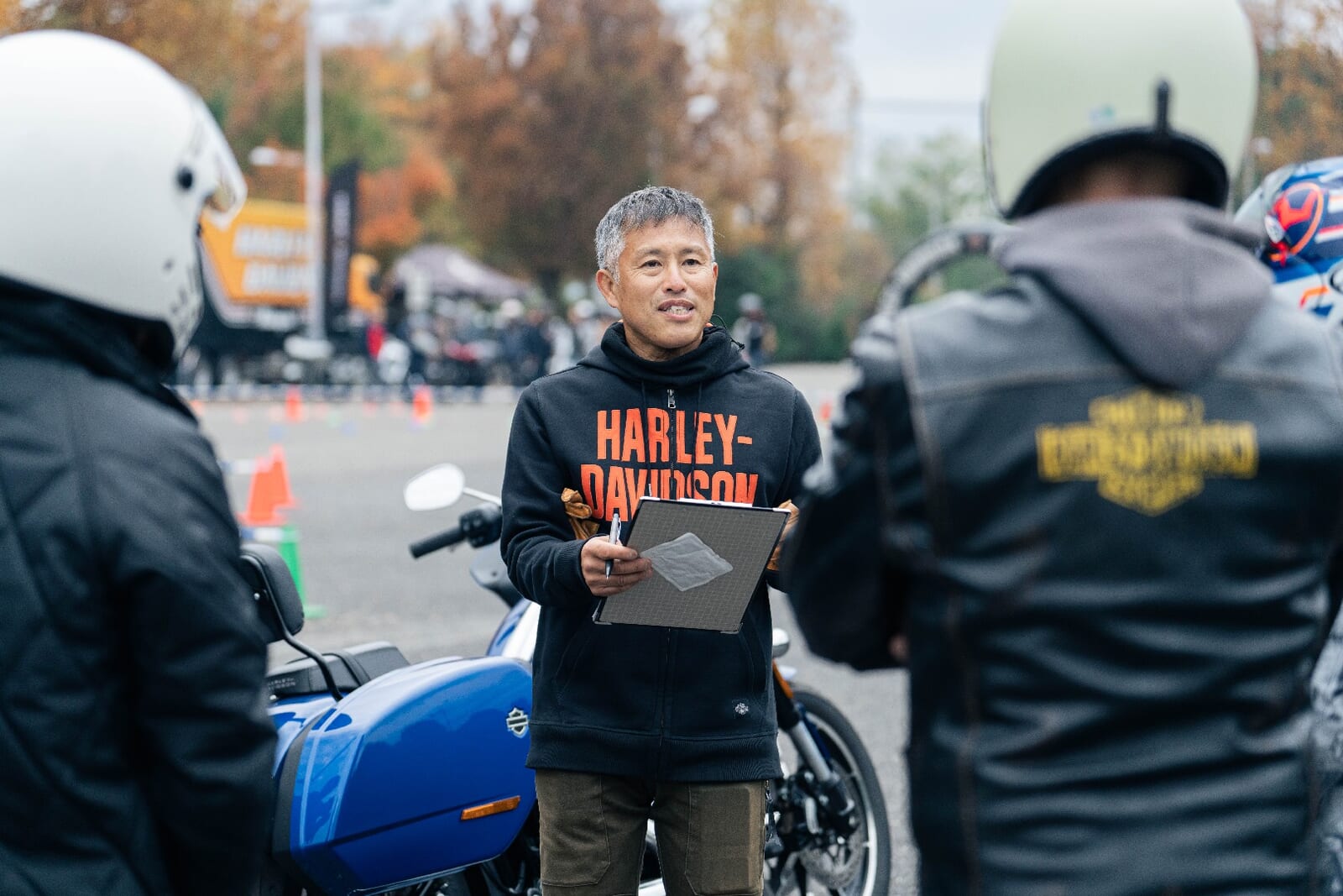 1つ目は、ハーレーダビッドソンアカデミーが認定するコーチが講師を担当しているため、全国で行われるレッスンにブレが生じないということである。そのためハーレーダビッドソンをより楽しんで乗れるようなブランドからのメッセージを確実に感じることができるのも大きなメリットだと感じる。二輪業界のレジェンド、ケニー佐川氏が主任講師として率いるコーチ陣は、国内外のレースで修羅場をくぐり抜けてきた猛者ばかり。メーカー主催という看板は伊達じゃない。参加者の満足度というより、もはや畏敬の念を抱かせるレベルの布陣だ。コーチ陣のレベルの高さも参加者の満足度を上げる要因となるのではないだろうか。