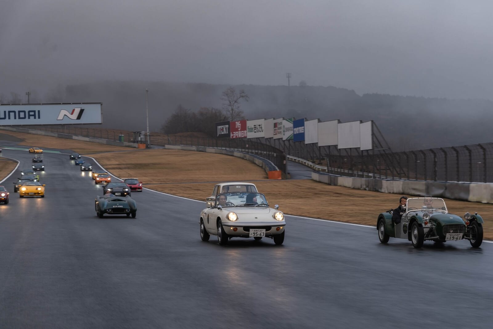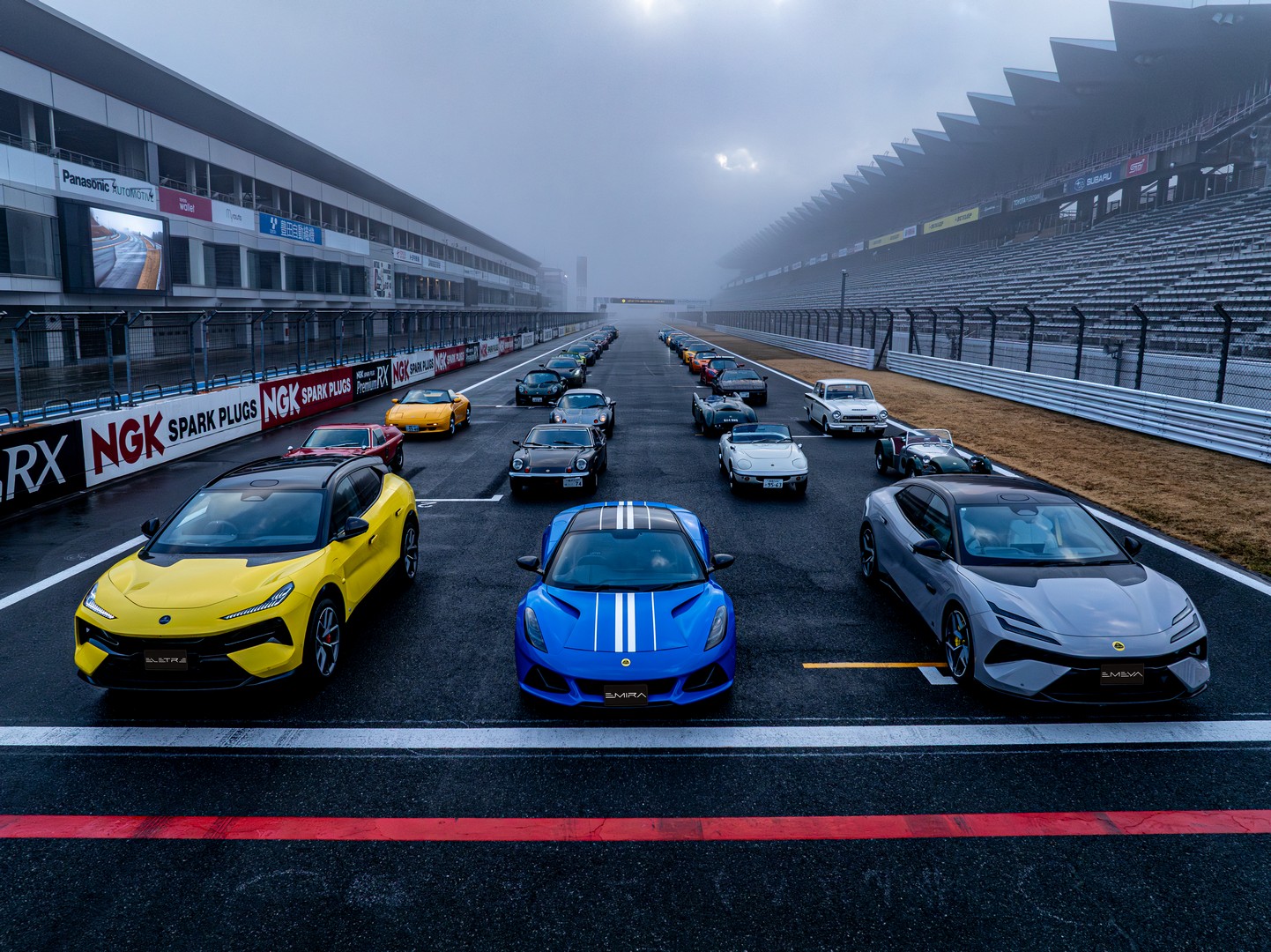 当日の富士スピードウェイは、英国ノーフォークのへセルを彷彿とさせるような、あるいはロータスの歴史そのもののように神秘的な霧に包まれていた。しかし、その白い帳(とばり)を切り裂いたのは、現代の電子音ではなく、かつてサーキットを支配した往年のフォーミュラ・サウンドであった。
