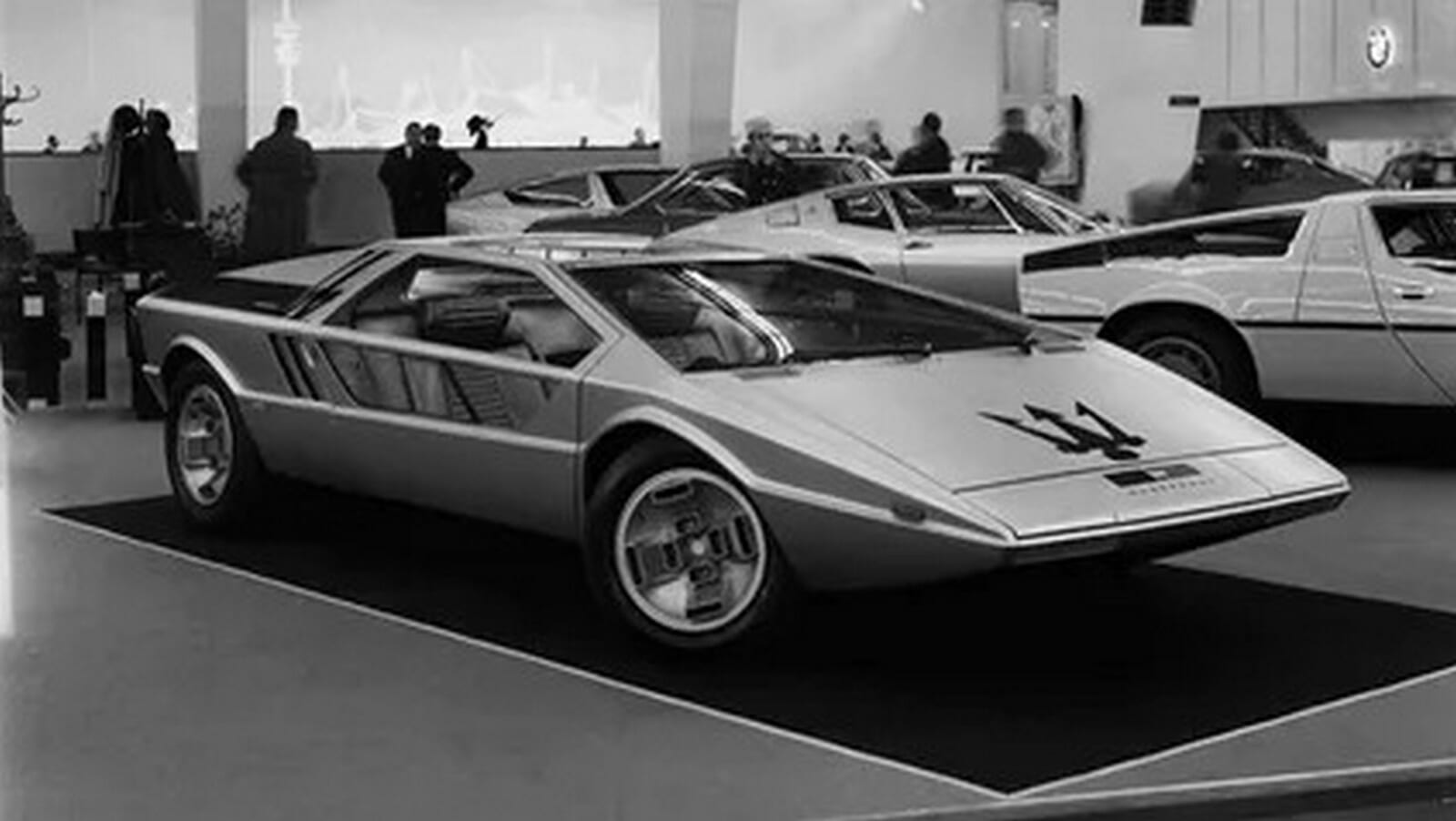 この「特に尖ったモノ」は、マセラティのバッジを付けている。1971年のトリノ モーターショー(70年代のトリノはまさにウェッジシェイプの中心地だった)に先駆けてジウジアーロがスタイリングしたブーメランは、マセラティ ボーラの足回りをベースにしたワンオフのコンセプトカーで、310bhp(314PS)の4.7リッターV8と、186mph(300km/h)前後の最高速度を備えていた。