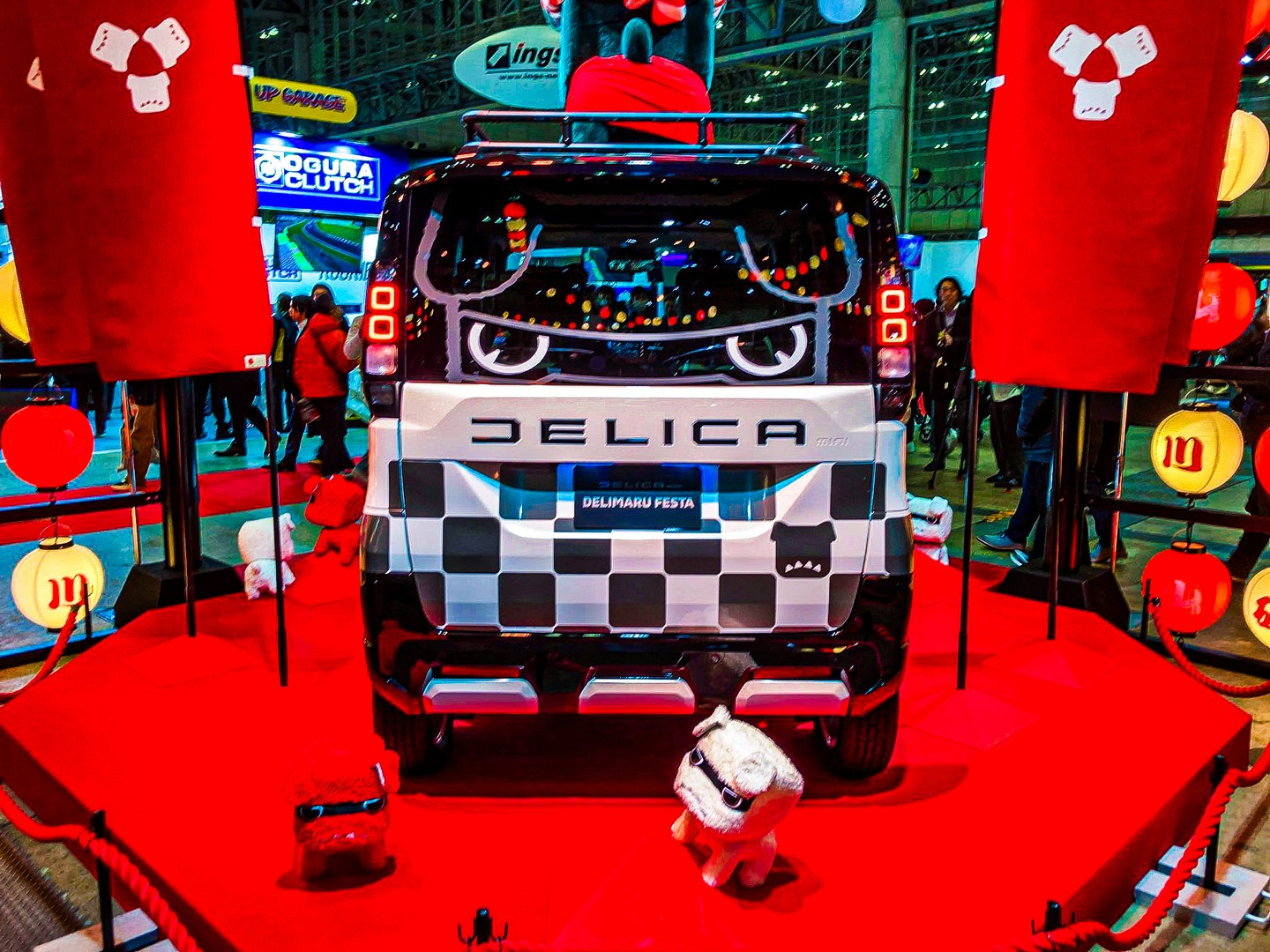 どうやら、ショーにおける三菱ブース全体のテーマは「さあ、デリカで遊びつくそう! デリカ・フェスティバル」らしい。我々には素晴らしい響きだ。要するに、カスタムされた軽自動車のデリカ ミニと、フルサイズの4x4デリカ D:5で溢れかえっているということだ。