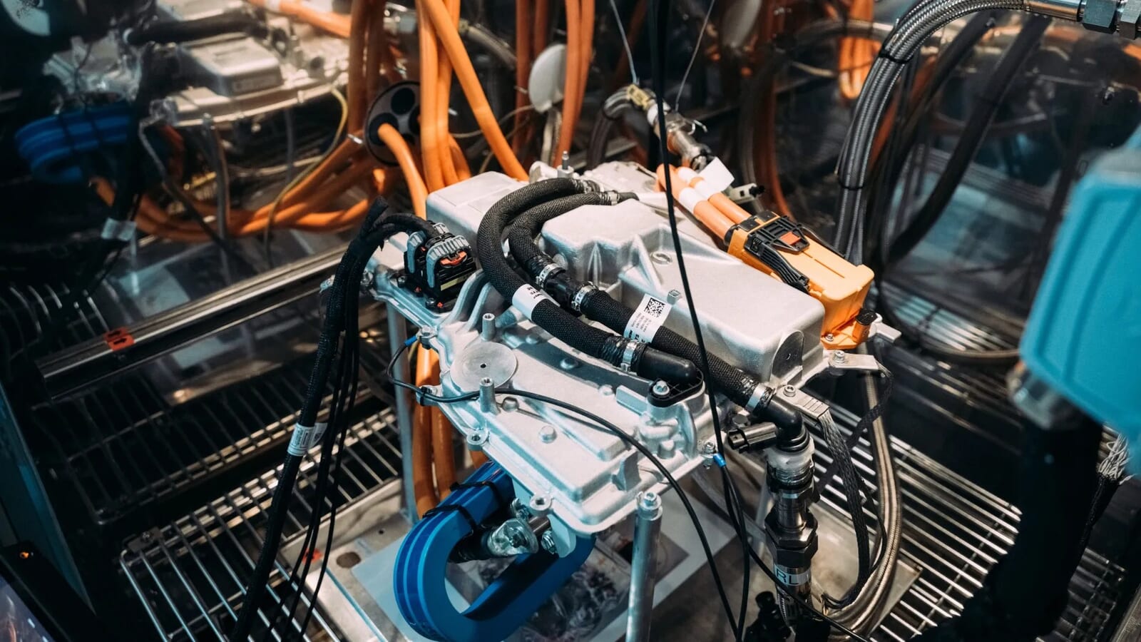 バッテリーに関しては、容量が100kWhを超えること(航続距離の数値はまだない)が分かっており、調整されたセル化学のおかげでより高いピーク電力を放出でき、エネルギー回生のためのより高い回生しきい値を持ち、標準のノイエ・クラッセモデルよりも速く充電できる。バッテリーは構造部材でもあり、フロントとリアの両方のアクスルに接続され、シャシー全体の剛性を高めている。