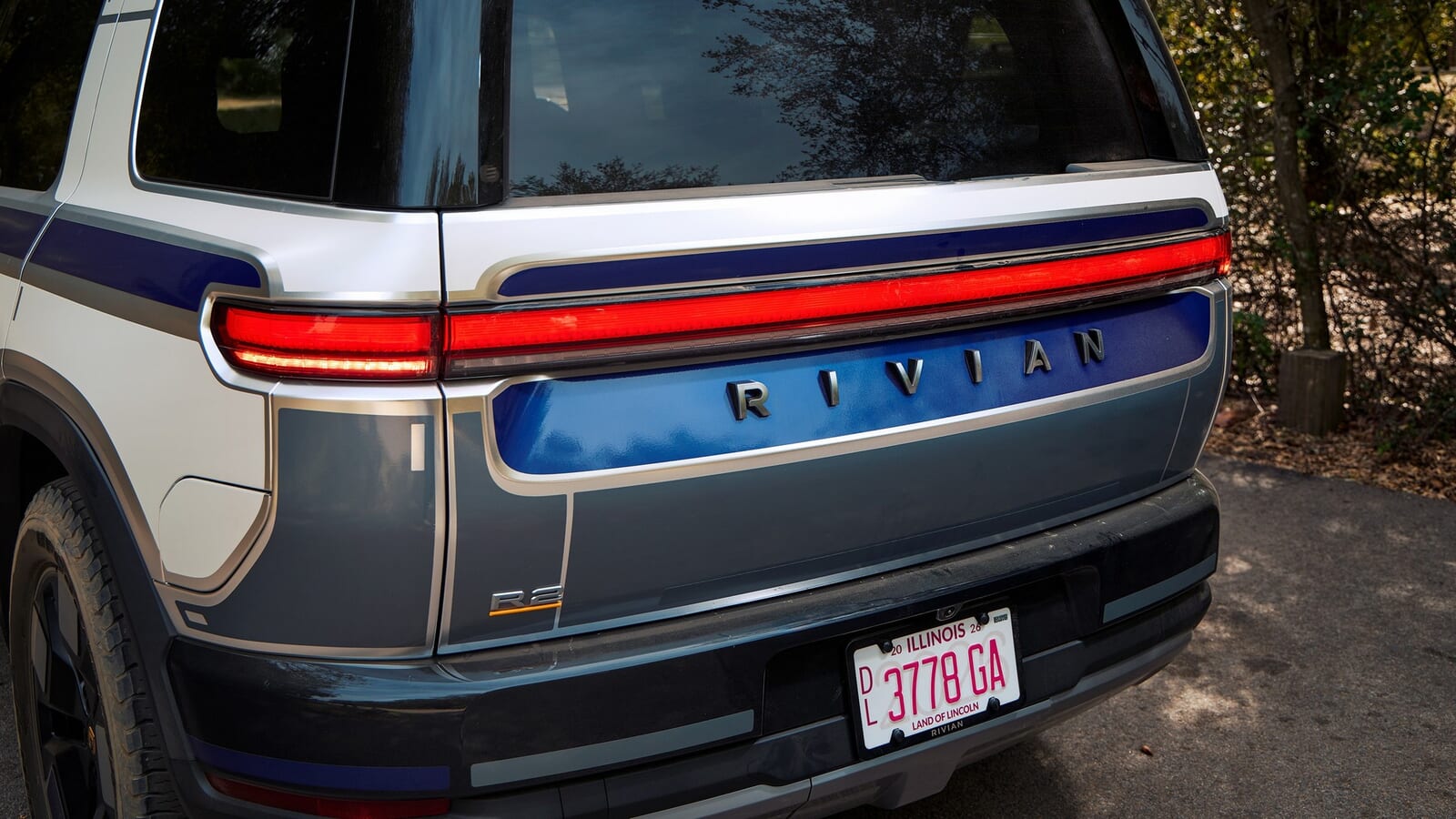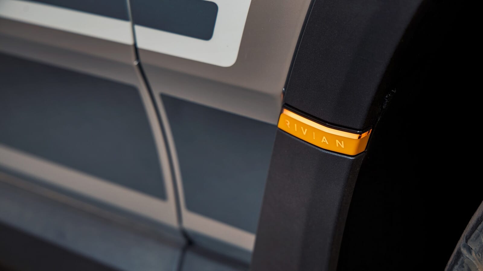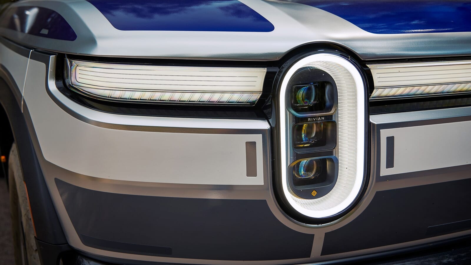非常に好感が持てる。使うには奇妙な形容詞に聞こえるかもしれないが、リヴィアンの哲学全体にフィットしている。R2のサイズは全長4.7m、全高1.7mで、だいたいテスラ モデルYやポールスター3と同じくらいのサイズだ(※2)。特徴的なヘッドライトとライトバーは進化しており、少し小さく、幅広になった。フロントフェンダーのバッジはウィンカーを兼ねている。攻撃的で細いLEDが支配するデザインの世界において、R2は新鮮なほど親しみやすく見える。