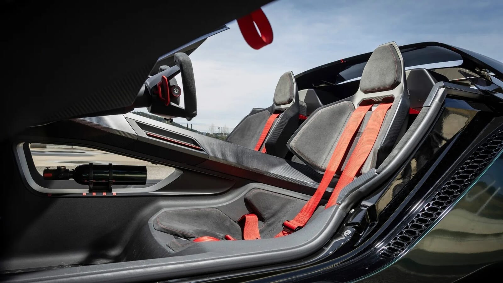 車体は低く、ミッドに詰め込まれた巨大なエンジンを収めるために、はるかにワイドに仕立てられた。巨大なリアウィングの装着を避けつつ、車体が浮き上がるのを防ぐために床下エアロダイナミクスが凝らされている。冷却用のスクープとベントが随所に配置され、カーボンファイバーで構築された。足元は19インチを履いていたが、2026年の今となっては、それがなんだか……古風にさえ感じられる。