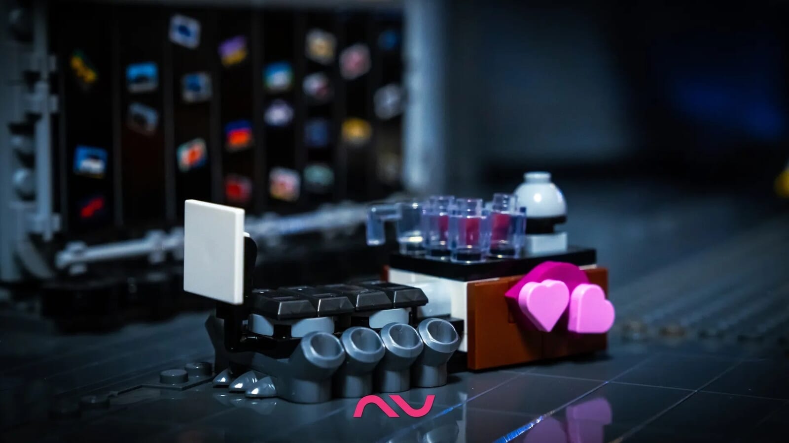 もしかしたら見逃したかもしれないイースターエッグ(隠し要素)としては、リチャードのミニフィギュアの足(※6)がある。観客の中にはイエス キリストもいる(知る人ぞ知るネタだ ※7)。DB9のサブゼロ冷蔵庫(※8)もある。V8ブレンダー(※9)まで。90×90cmのスタジオを設計し、組み立てるのに45〜50時間(マンアワー)かかったそうだ。