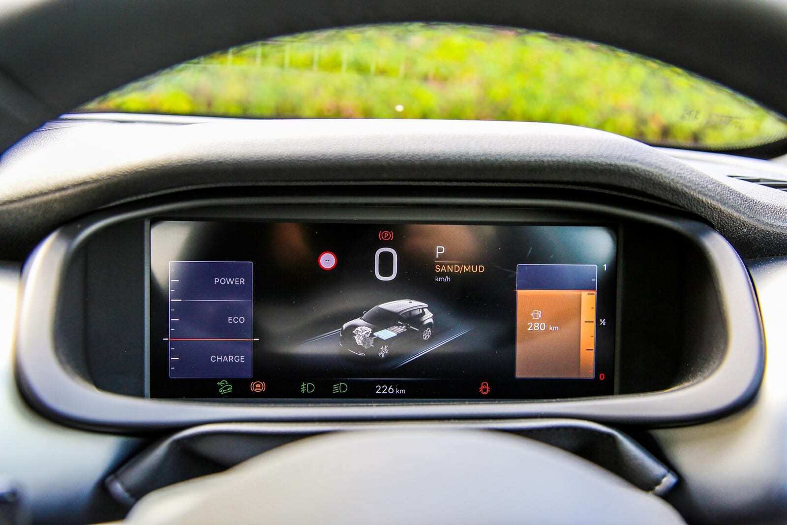 ぬかるんだ深い轍に突入する。一瞬、ステアリングから手応えが消えかけるが、アクセルを踏み込むとマルチリンクサスペンションが四輪をしっかりと地面に押し付け、リアの1,900Nmのトルクが泥を激しく蹴り上げながら車体をグイグイと前に押し出す。全く躊躇がない。