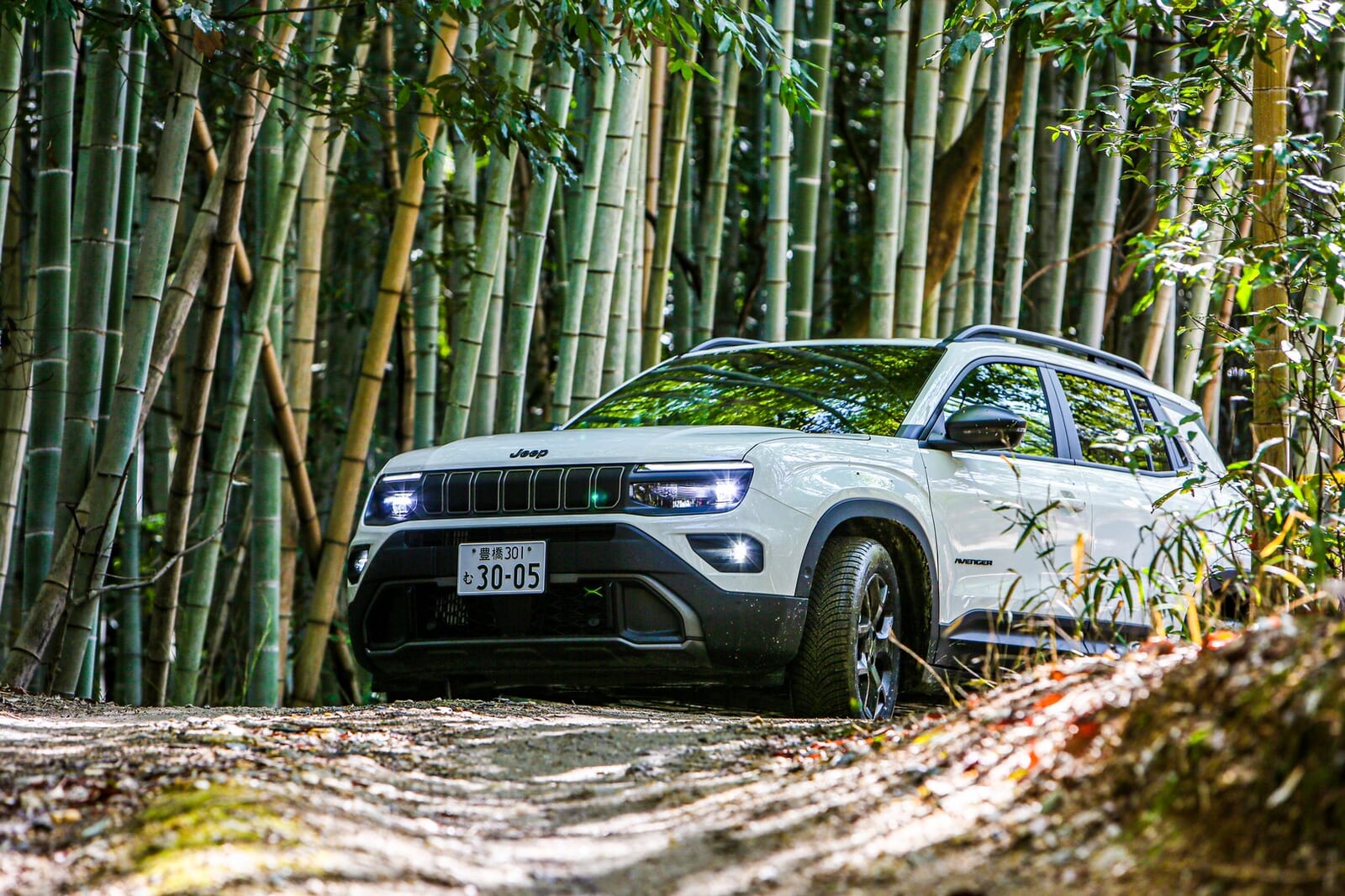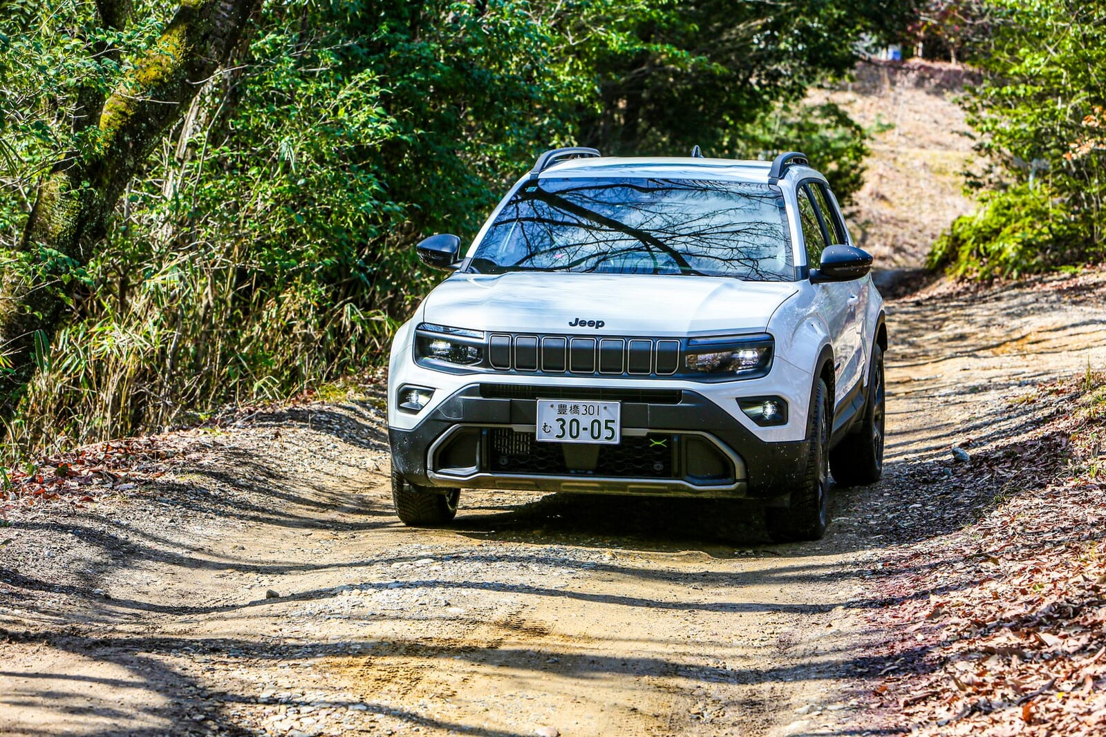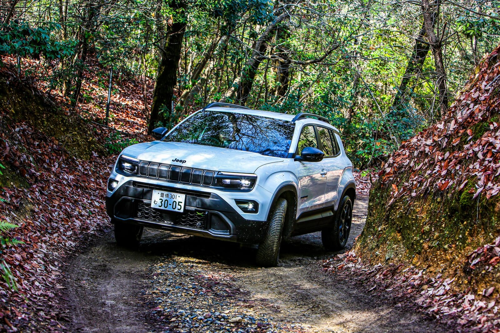 そんな折、愛知県にある「さなげアドベンチャーフィールド」に呼び出された。木々が生い茂り、泥と轍が支配する本格オフロードの聖地である。そこに待ち受けていたのは、アベンジャーの新しいバリエーション、「4xe Hybrid(フォー・バイ・イー ハイブリッド)」だった。四輪駆動であり、エンジンを積み、そして何より、泥まみれになる準備が完全に整っていた。