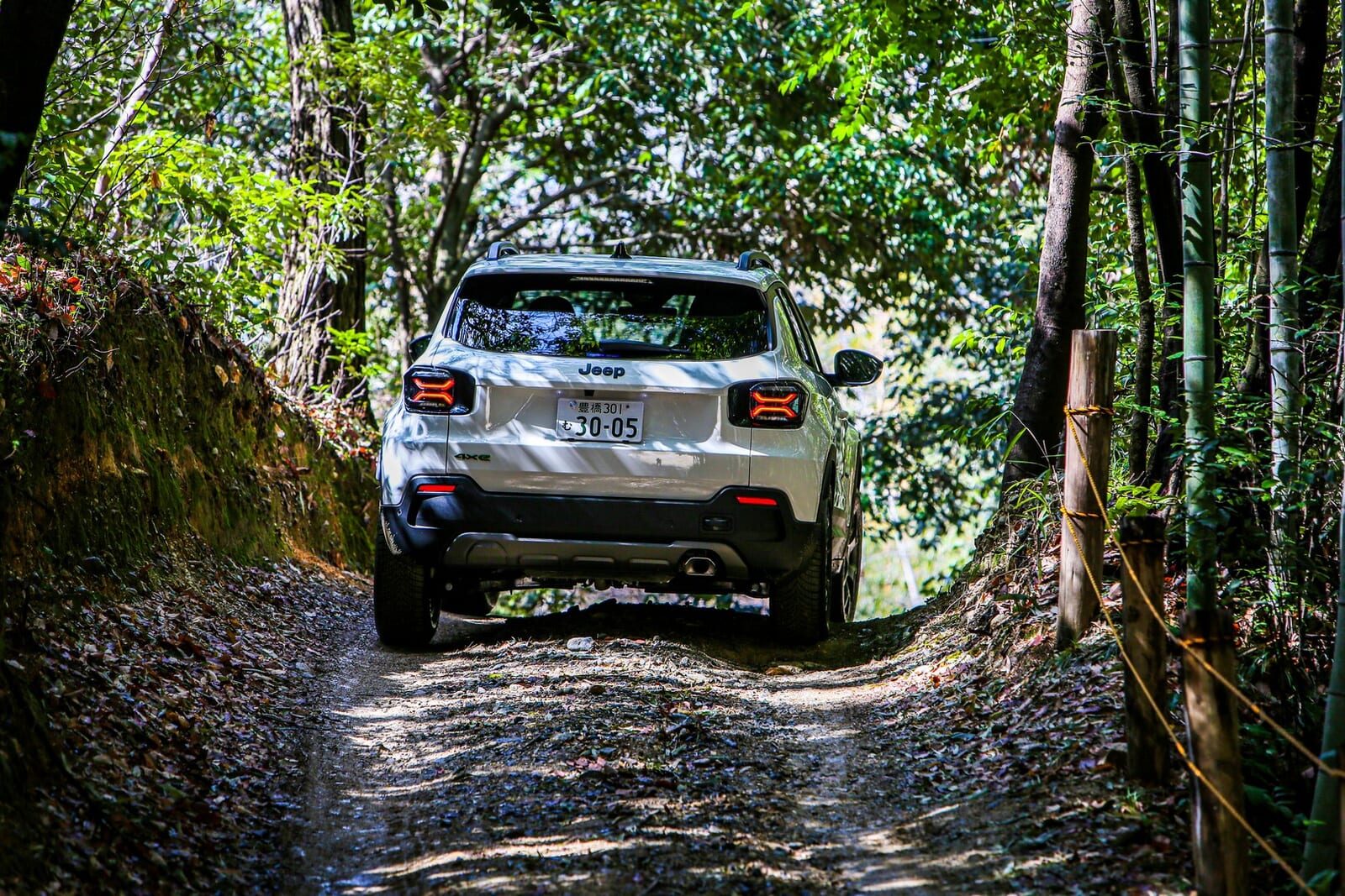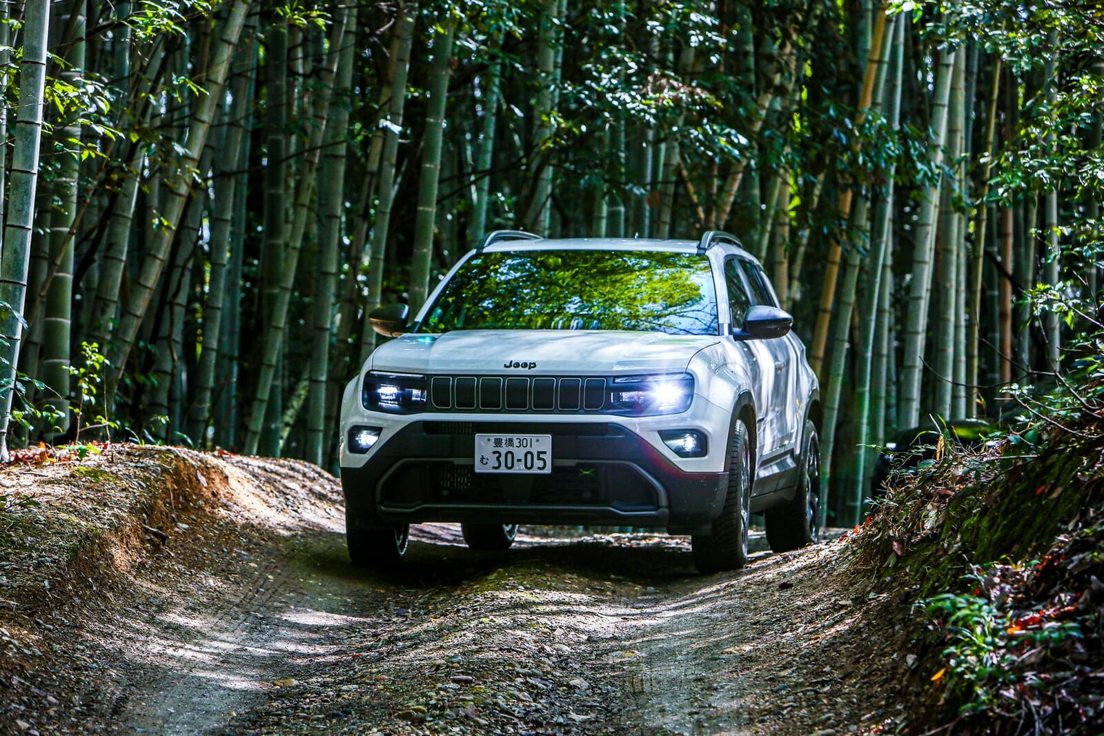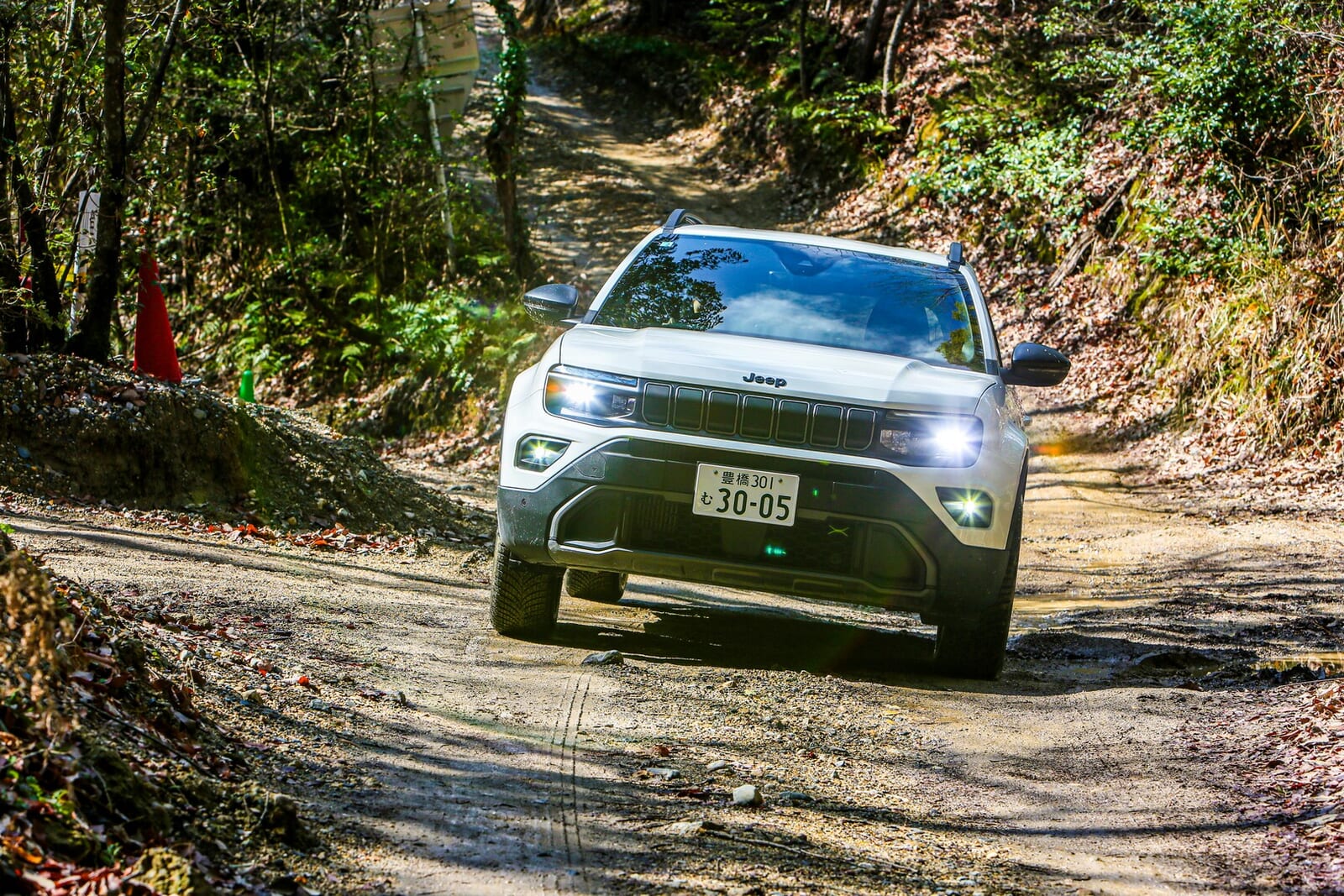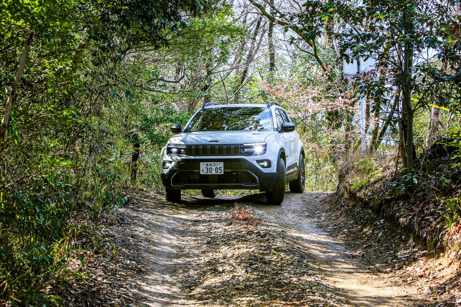 そんな折、愛知県にある「さなげアドベンチャーフィールド」に呼び出された。木々が生い茂り、泥と轍が支配する本格オフロードの聖地である。そこに待ち受けていたのは、アベンジャーの新しいバリエーション、「4xe Hybrid(フォー・バイ・イー ハイブリッド)」だった。四輪駆動であり、エンジンを積み、そして何より、泥まみれになる準備が完全に整っていた。