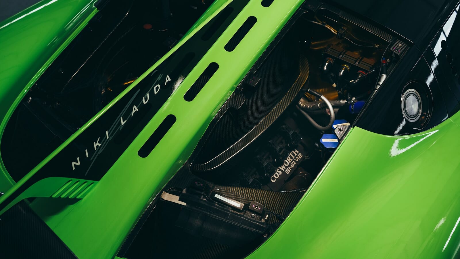 その通り! これはGMA(ゴードン マレー オートモーティブ)T.50s ニキ ラウダであり、私たちの膝をガクガクさせるには十分すぎる代物だ。ゴードン マレー(※マクラーレンF1などを手掛けた伝説的カーデザイナー)は、これがT.50スーパーカーの単なる「バージョン違い」ではなく、同じ基本骨格を用いながらも全く異なる開発要件のもとで進められた、並行する設計 開発プログラムの産物であると語っている。