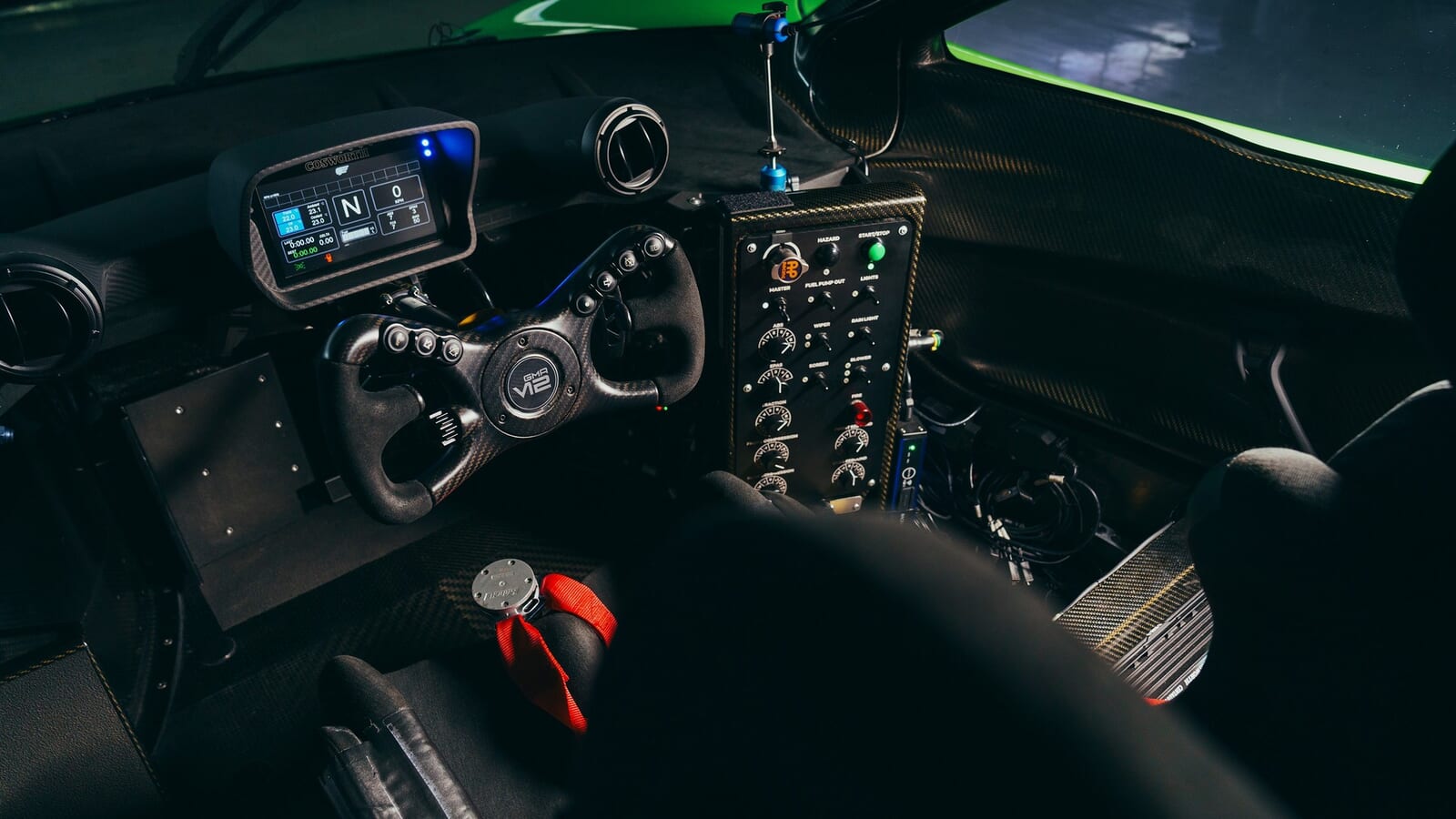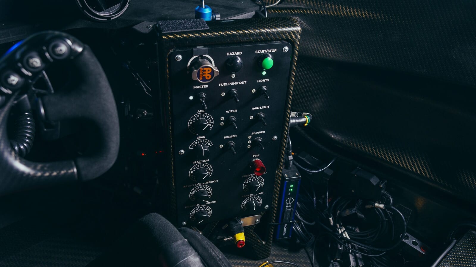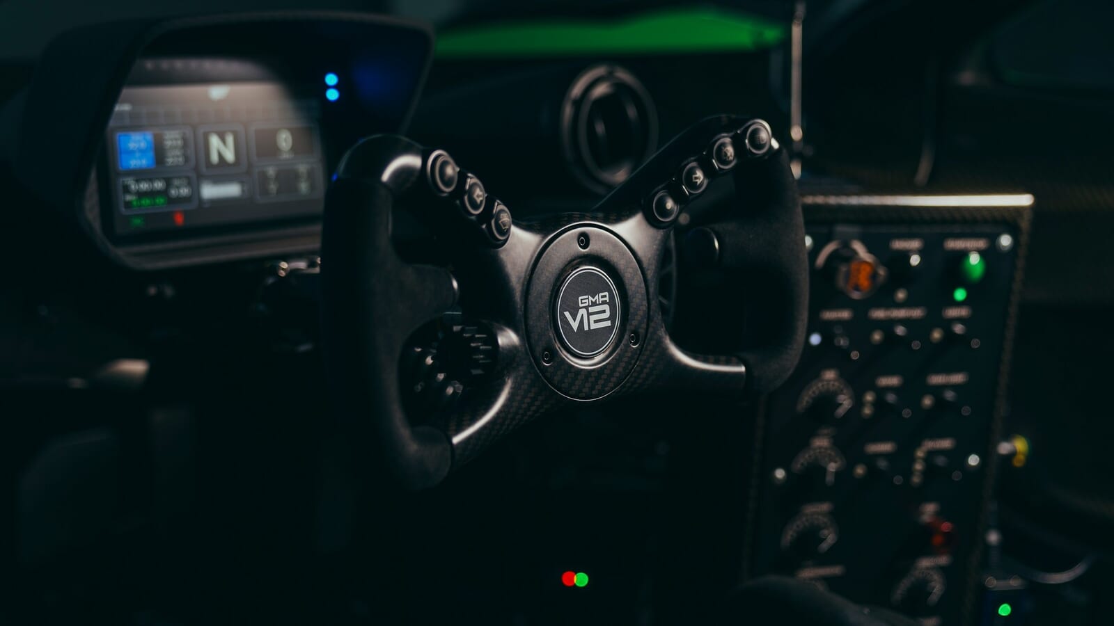 右側には、こちらに角度を向けた大きなコントロールパネルがあり、ABS、トラクションコントロール、EPAS(※電動パワーステアリング)のアシストレベルを設定するための大きなロータリースイッチが備わっている。R53製ダンパーもここで調整可能で、フロントとリアの圧縮(コンプレッション)と伸び(リバウンド)をそれぞれマイナス4からプラス4まで個別に設定できる。ポルシェ 992型 911 GT3 RSでできることと少し似ている。どれも素晴らしい機能だが、GMAのエグゼクティブ プロダクト&ブランド ディレクター(そしてインディカーで4度のチャンピオンに輝いた)ダリオ フランキッティがすでにバーレーン インターナショナル サーキット向けに車をセットアップしてくれているので、私はあえて触らないでおくことにする。