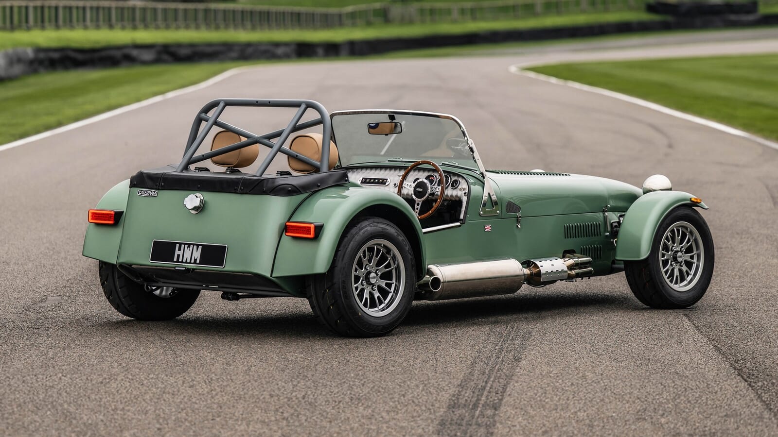 HWMは現在でも、5台製造された1951年製シングルシーターのうちの1台を所有しており、その非常に美しい「HWM グリーン」の塗装がスキャンされ、この特別なセブンに再現されたと聞いている。さらに、フロントには特注のグリル、レーシングカーにインスパイアされたサイドパネルのルーバー、そしてリアの中央にはクロームメッキの燃料フィラーキャップ(給油口)が取り付けられている。気の利いた小さな13インチのアルミホイールも装備している。