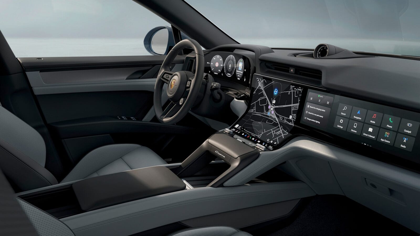 この544ps(ローンチコントロール使用時は最大666ps)を提供する動力源は、フロントとリアに1つずつ配置されたツインモーター・ドライブトレインだ。カイエン ターボから受け継いだ技術も採用されており、リアモーターの直接油冷システム(どうしてもあの恐竜のジュース=化石燃料由来のオイルを使うのをやめられないんだな)、トルクベクタリング(PTV Plus)のオプション、「アクティブ ライド」サスペンション、そしてモンスター級のカーボンセラミックブレーキ(PCCB)などが備わっている。