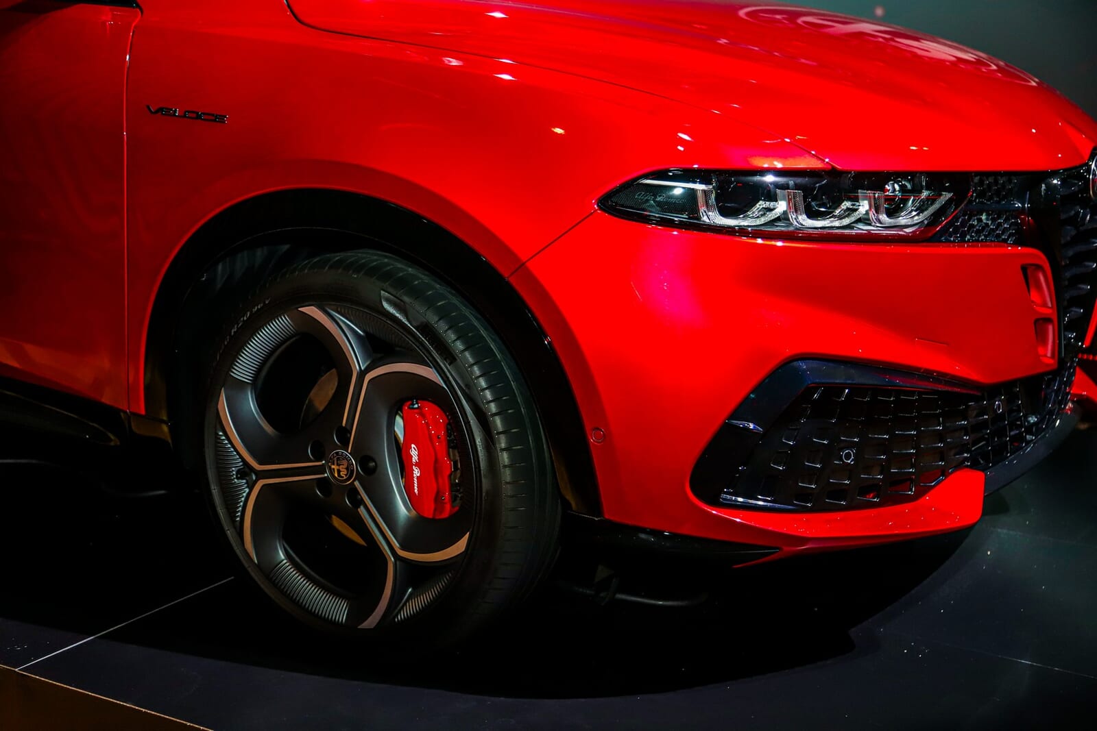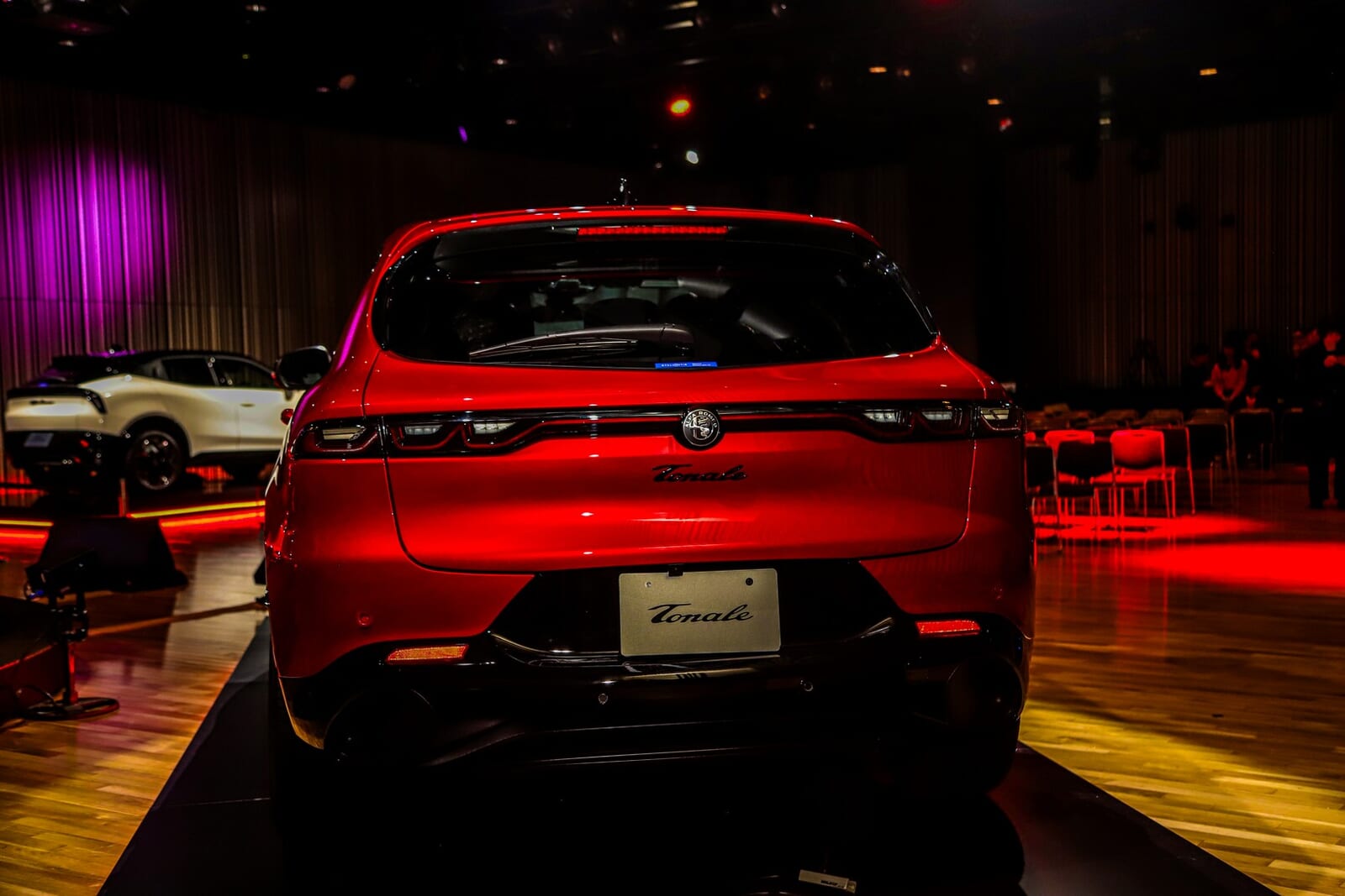 会場に足を踏み入れると、メインステージでベールがかかったままのトナーレが置かれていた。そして、アンベール。強烈なスポットライトを浴びる「ブレラ レッド」の新型トナーレが我々を睨みつける。しかし、イタリアの伊達男たちは今日、我々を徹底的に誘惑し、財布の紐を断ち切らせるつもりらしい。会場の脇には、血の気の多い2台の限定車が「ついで」のように、しかし圧倒的なオーラを放って鎮座していたのだ。