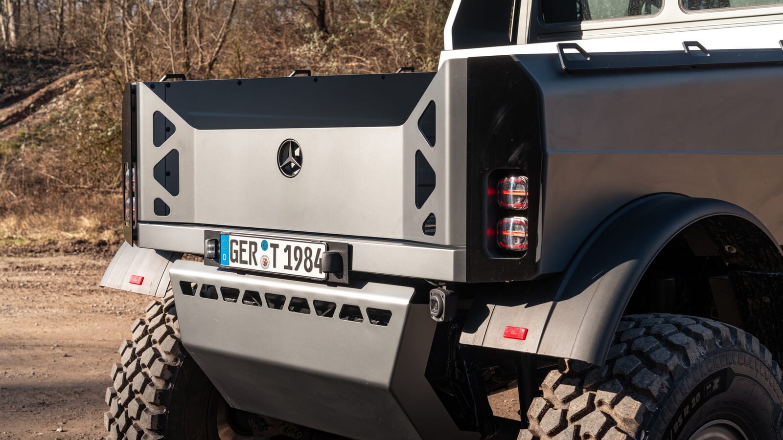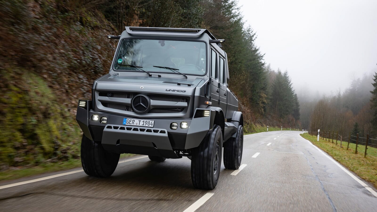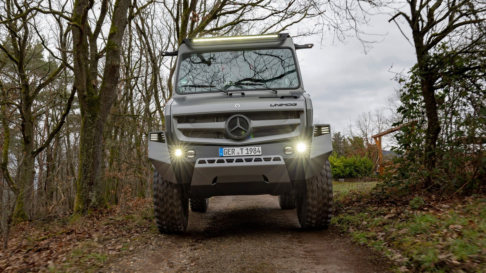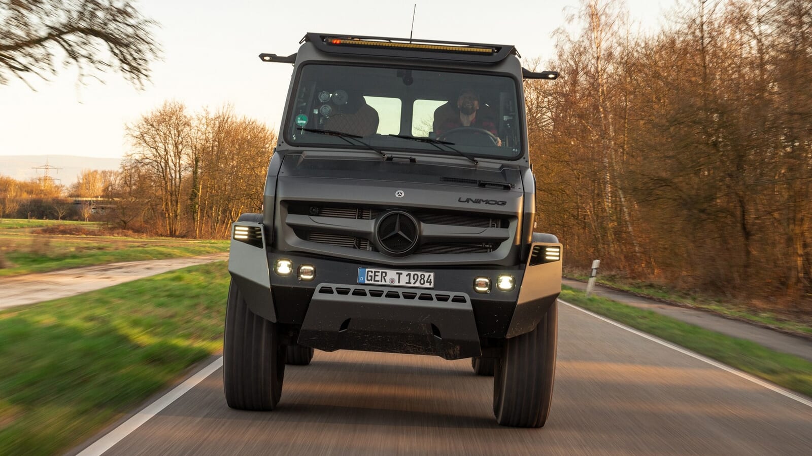 この構成のウニモグは作業用ではないので、農作業用の道具をぶら下げたり、現場でハンドルを左右に振り回したりはできない。このコンセプトは究極のオフローダーであり、動的な変化もほとんどない。