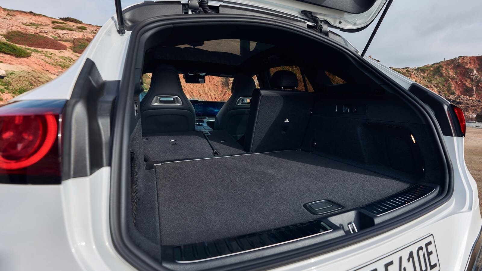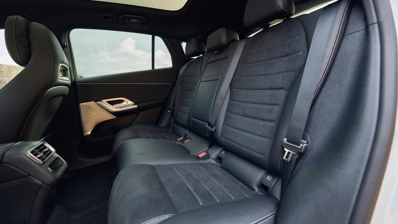 メルセデスの「AI駆動」によるMB.OSオペレーティングシステムに基づいており、レスポンスが良く直感的だが、最初は完全に圧倒される。興味深いことに、メルセデスはステアリングホイールに物理的なスクロールボタンを復活させたとも強調しているが、これは少し偽善的に思える。インテリアの残りの部分は美しく作られており、本物の金属とヴィーガン協会認定のレザー(本当だ、冗談じゃない)で覆われている。現行GLCよりホイールベースが84mm長くなったおかげで後席の頭上と足元の空間は広がり、トランクスペースも大きくなった。そしてフランク(前部トランク)もある。