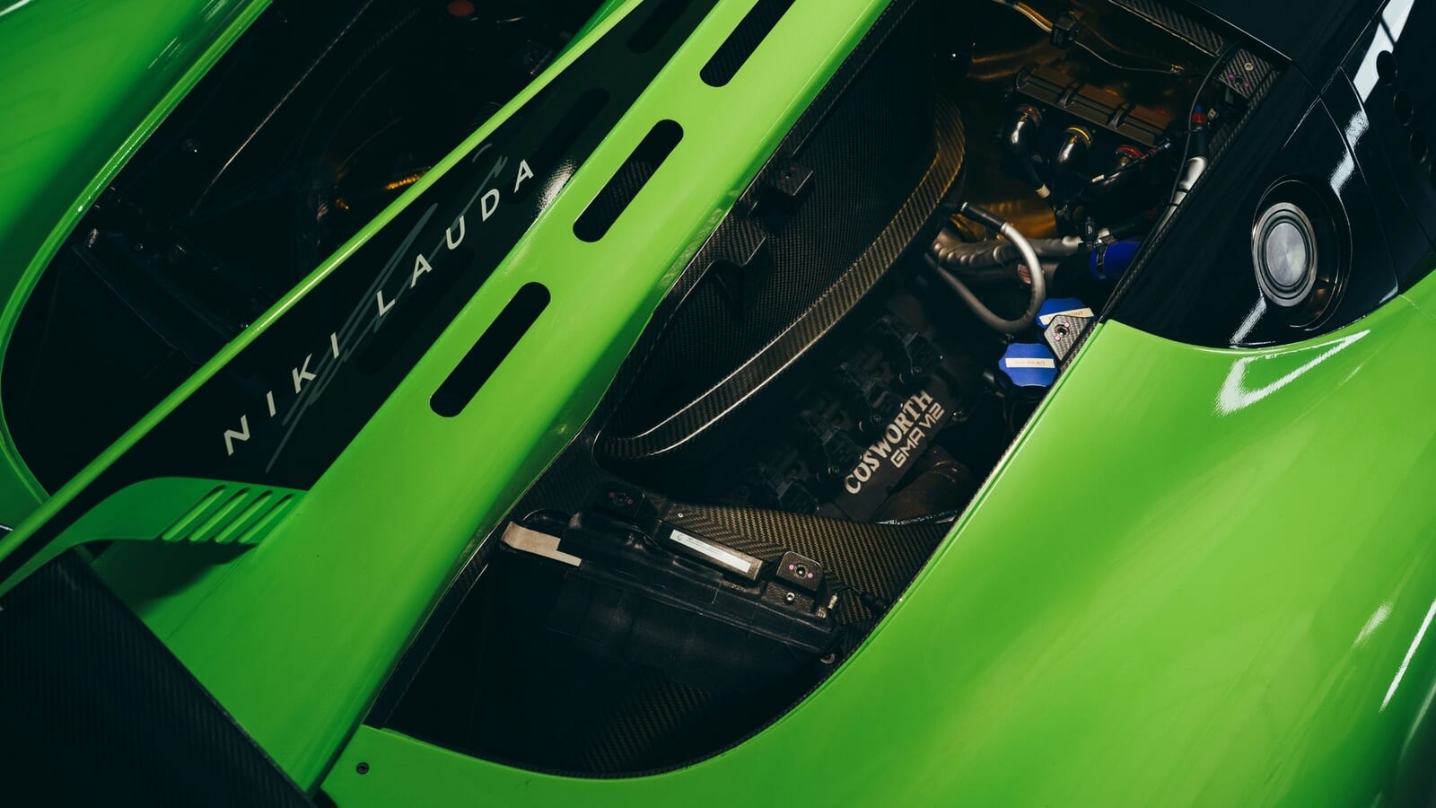 私のすぐ右手に、黒いGMA T.50S ニキ ラウダがある。シャッターの閉まったピットボックスの中に収まり、エアジャッキで持ち上げられ、センターロックホイールとスリックタイヤが脇に置かれている。驚くほど小さく見えるが、それ自身の重力を生み出すほど大きな存在感を放っている。外では、太陽が地平線の上に顔を出したところで、バーレーン インターナショナル サーキットをこの世のものとは思えないピンクがかったオレンジ色の光で照らし出している。よく晴れて乾燥した冬の日の、最後の名残である。寒い日だが、雰囲気は暖かく、幸せに満ちている。