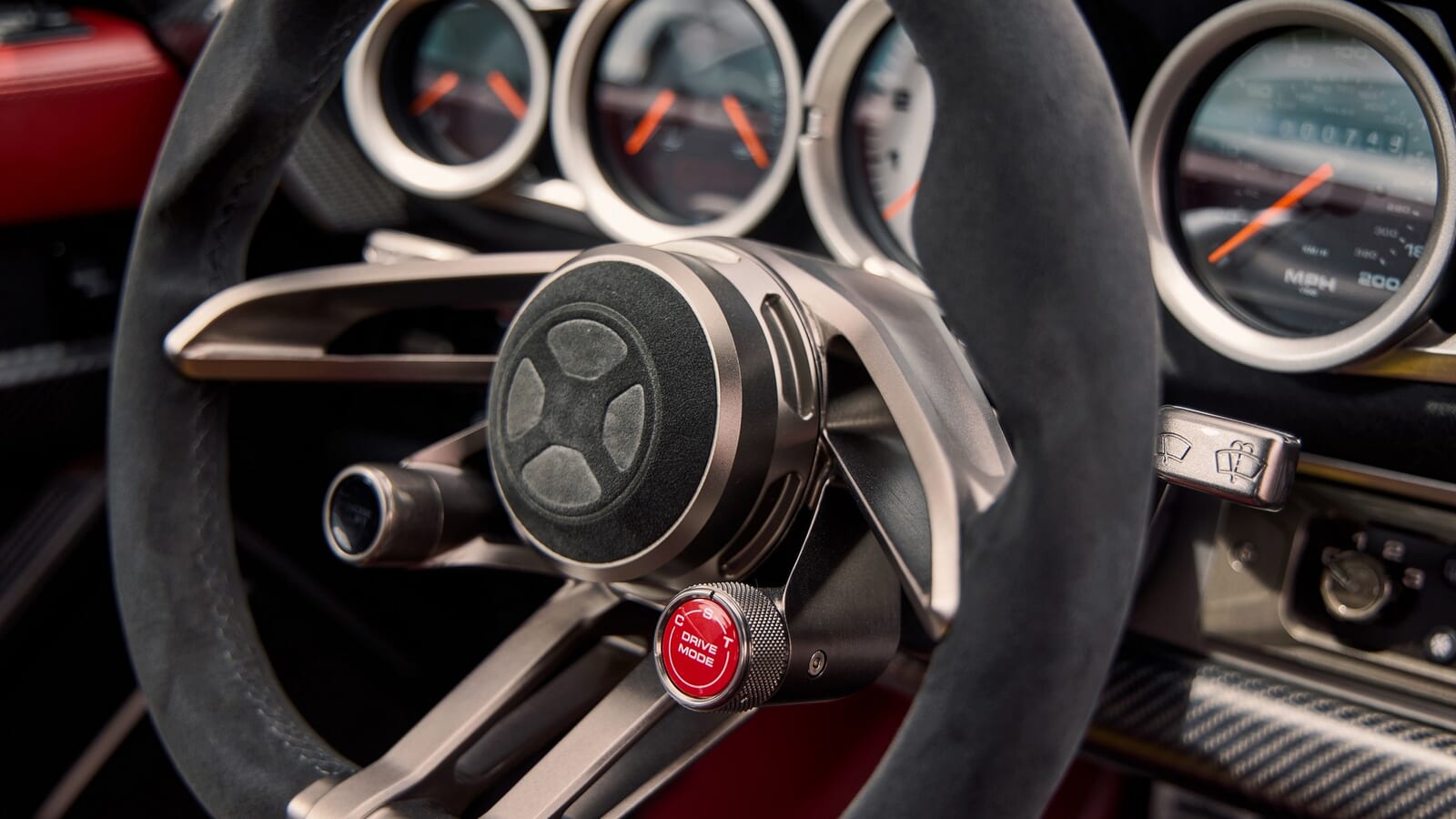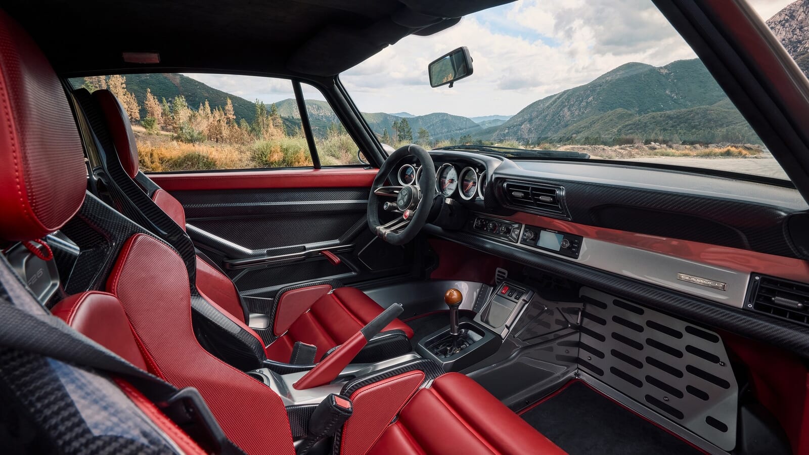 インテリアも同様である。ガンサーワークスは、トーランス(※シンガーの本拠地)にいる隣人たちほどの手間と深みをかけていない。ウィンドウとミラーのスイッチはキャリーオーバー(流用)されており、少し場違いに見え、全体として完全なデザインのまとまり(コヒージョン)には欠けている。