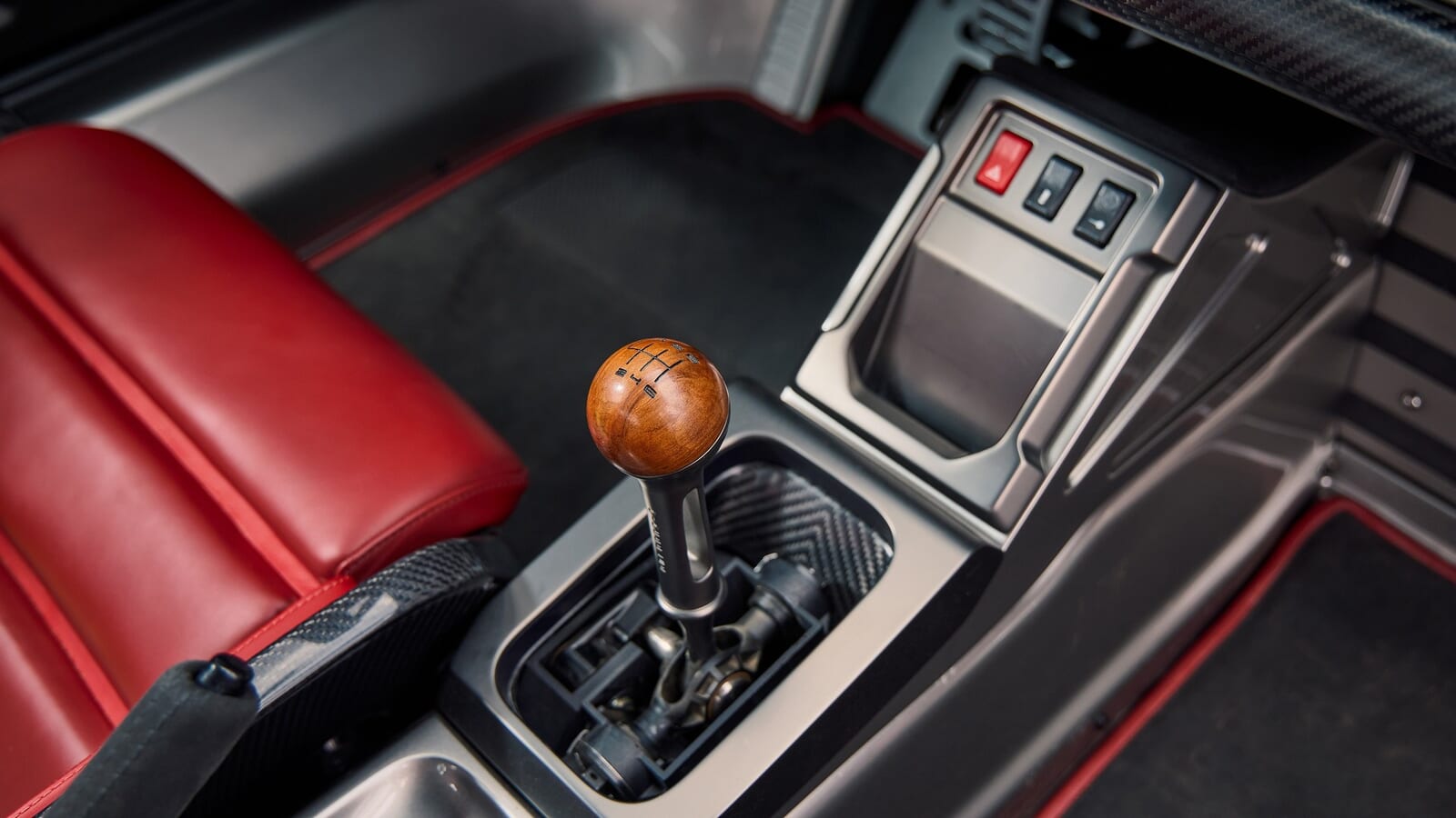 しかし、基本はしっかりしている。太ももの下のサポートはもう少しあってもいいが、シートは見た目よりはるかに快適で、サーキットでヘルメットのクリアランスを確保できるように、マグネットで取り外し可能なヘッドレストを備えている。ブレーキペダルはフットウェル(足元)の奥の方にありすぎるように見えるが、ヒール&トゥには完璧な位置にある。そして、ウッドトップのギアレバーは握り心地が愛らしく、これほどのトルクを処理するトランスミッションとは思えないほど、ゲート内をはるかに簡単かつ満足のいく感触で動いてくれる。そして、むき出しのリンケージが変に美化されていない事実も気に入っている。