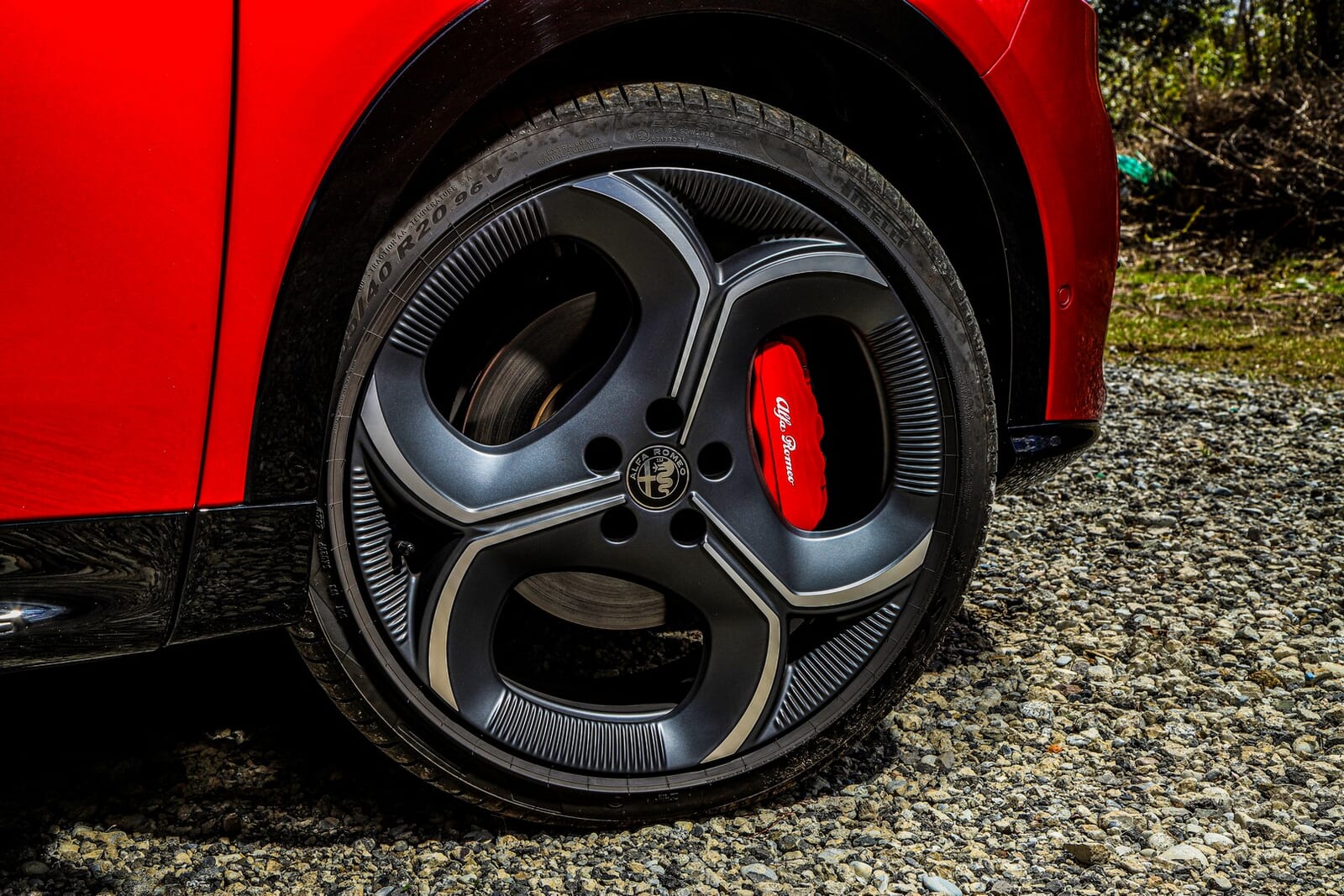 ドライバーズシートに乗り込む前に、まずはブレラレッドのボディカラーをまとったトナーレ イブリダ ヴェローチェの佇まいを検分する。ボディサイドは滑らかな曲面で凹凸が彫り込まれており、メタリックのブレラレッドの細かなフレークが直射日光を反射して、美しい陰影を生みだしていた。かつてのSZ/RZの波打っていたボディパネルはファイバー製ボディだから仕方ないと、あたたかい目で見ることもできた。それ以降のアルファ ロメオのボディパネルもそれなりに波打っているモデルもあったが、それこそがイタリアの手作業と半ば自虐的に笑って済ますこともできた。しかし、現在のようなグローバルでの展開ともなると、それらを「職人の手作り」という一言では済ますことはできなくなった。トナーレでは、360度スキャンしてボディ塗装の状態を検知するイーグルアイという設備を生産工程で採用したという。これによりパネル間の段差やチリもさらに厳しい基準で外観の品質の向上が図られているというわけだ。
