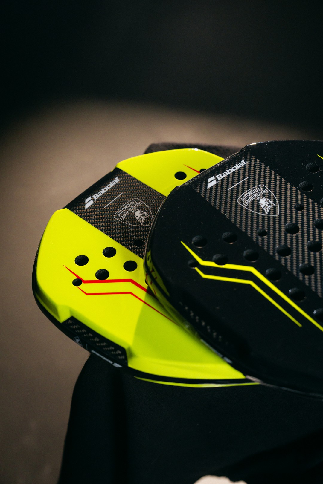 中でも特筆すべきは「BL001」である。このモデルはなんと、サンタアガタ・ボロネーゼ工場にあるランボルギーニのカーボンファイバー専門部門によって直接製造されているという。つまり、あなたの手にするそのラケットは、紛れもなくスーパーカーのシャシーと同じ場所、同じ職人の手によって生み出されたものなのだ。デザイン面でも、ランボルギーニを象徴する「Y」字のモチーフとブランドカラーがあしらわれており、パフォーマンスとビジュアルの両面で圧倒的な存在感を放っている。
