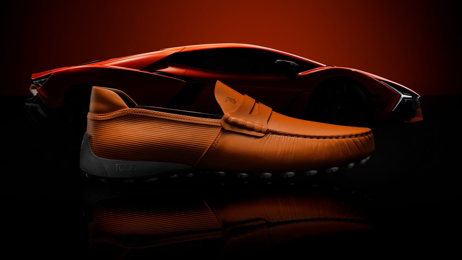この共通するレザーへの徹底したこだわりから誕生したのが、イタリアのラグジュアリーブランド「Tod’s(トッズ)」とのコラボレーションである。厳選されたレザー、洗練されたライン、そして細部まで徹底的にこだわった構造を通じて、スニーカーやトッズのアイコニックな「Gommino(ゴンミーノ)」に新たな解釈が加えられた。2つの世界の間で織りなされる対話を通し、ランボルギーニを象徴する「Y」字のデザインがローファーの特徴的なソール部分に表現されている。洗練さ、革新性、そしてクラフツマンシップのバランスの中に、猛牛のスピリットが自然に溶け込んでいる。